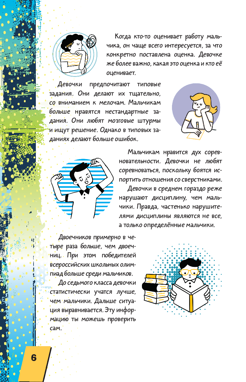 Помимо всевозможных приколов, ты найдёшь здесь массу полезных советов. Узнаешь, что взять с собой в поход; как приготовить несложное, но вкусное блюдо; а в конце найдёшь тесты, которые могут помочь определиться с будущей профессией.