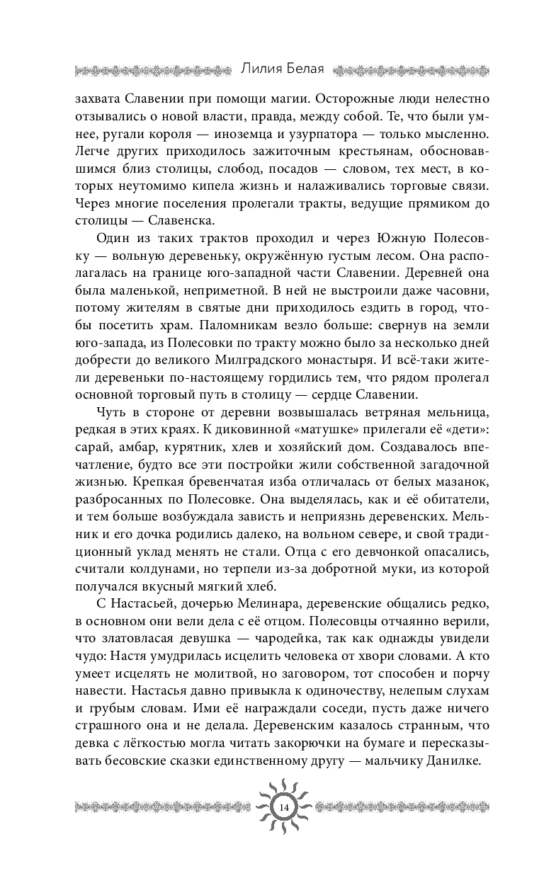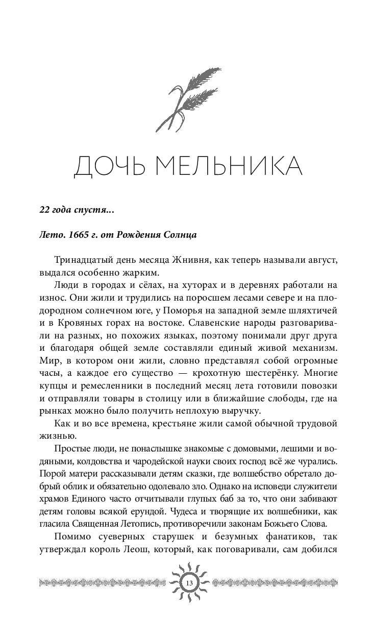 Пан Властош Вишнецкий – темный чародей, одержимый одной целью: спасти родную землю от кровавого противостояния между шляхтой и государем. Его оружие – редкий солнечный дар, сокрытый в Анастасии, дочери простого мельника. Чтобы завладеть этой искусной силой, Властош готов на всё. Но сможет ли свет солнца не только изменить судьбу Славении, но и раскрыть тайну убийства его собственной матери?