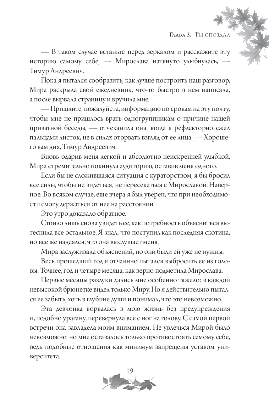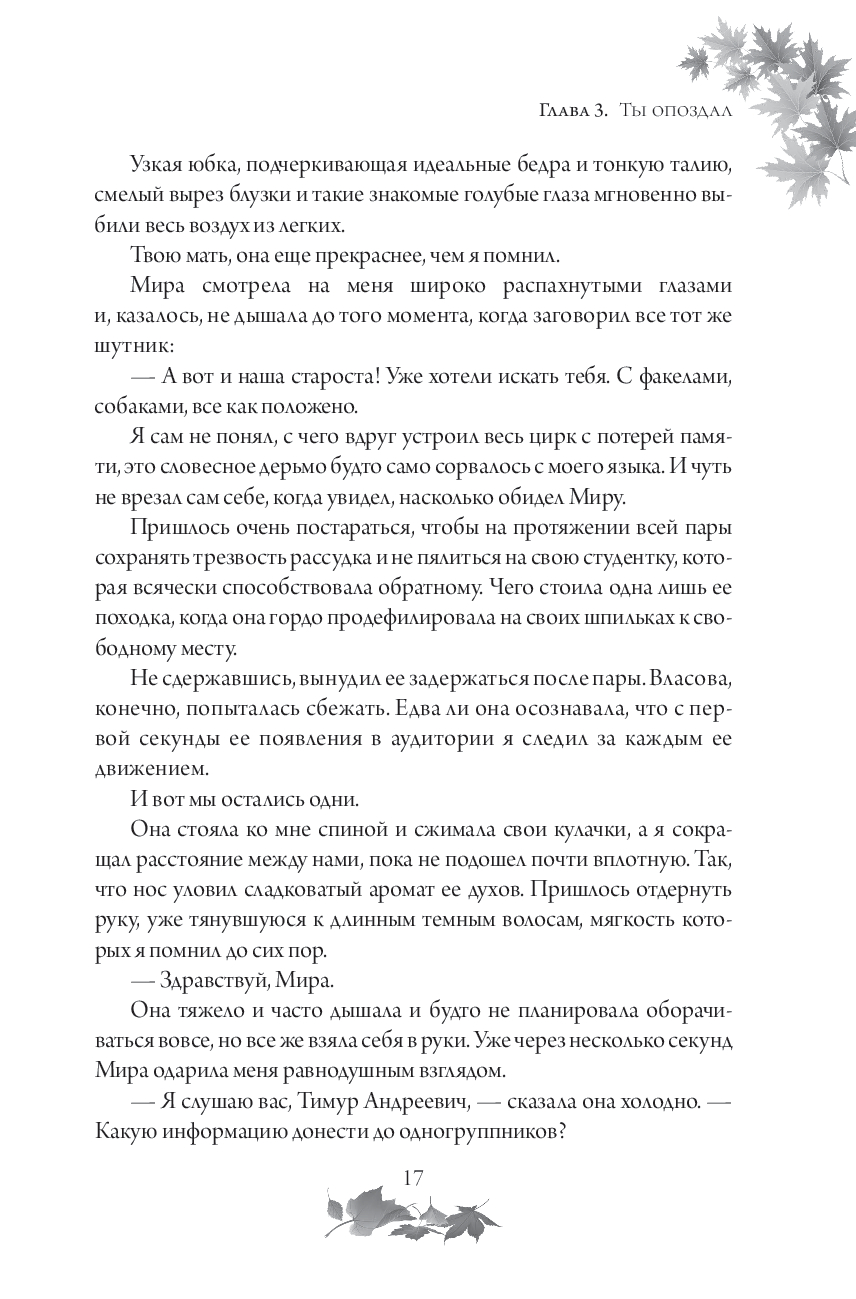 Мирослава уверена, что больше никому не позволит причинить себе боль, но все меняется, когда в ее размеренную жизнь врывается тот, кто однажды уже разбил ей сердце. Мира оказалась совершенно не готова к его желанию все вернуть и к тем чувствам, которые вырвались на свободу, стоило ему лишь произнести ее имя.