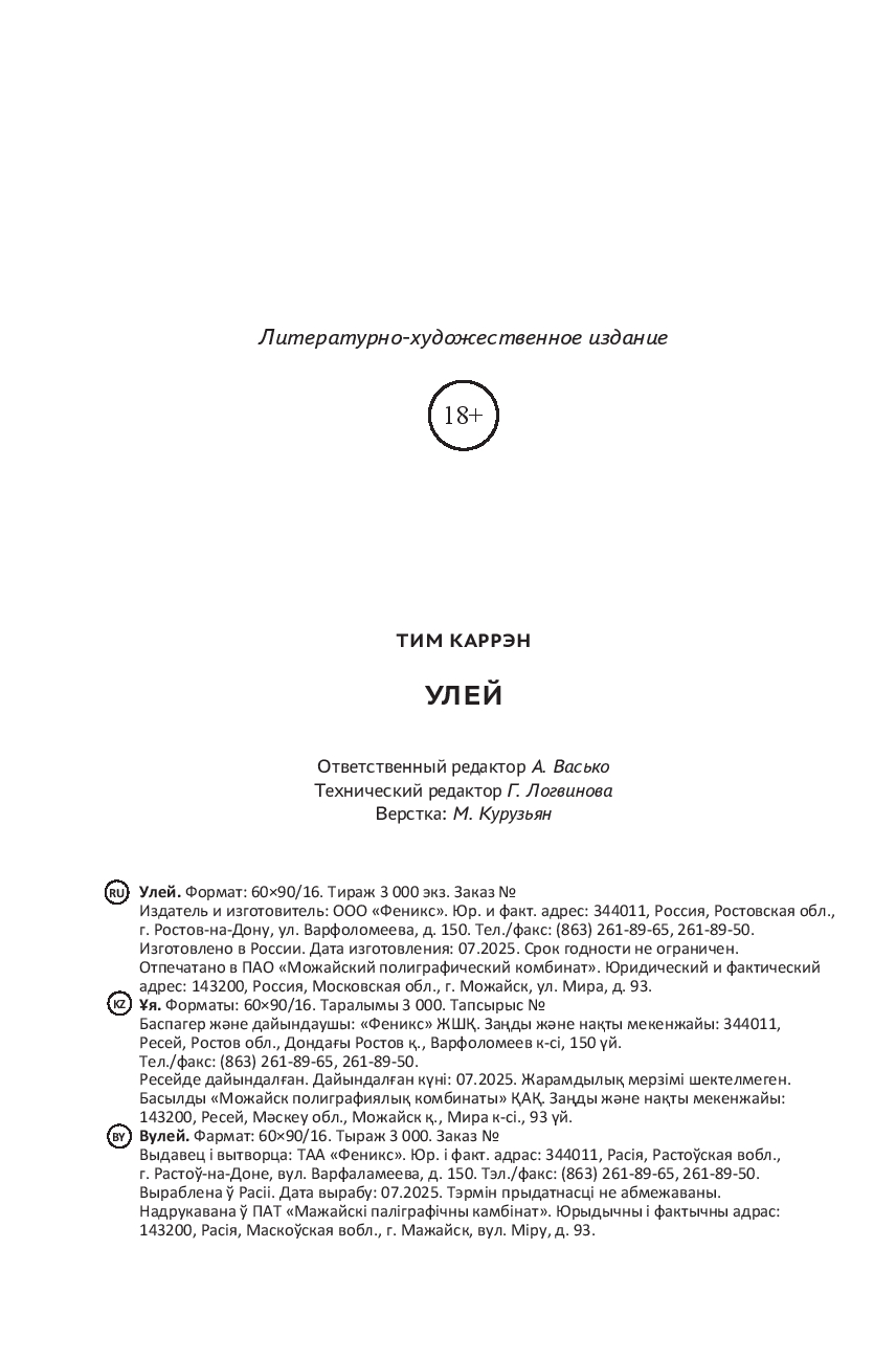 | Изготовитель | ЗАО "Издательство "Феникс". 190000, РФ, г. Санкт-Петербург, пер. Антоненко, 2 |