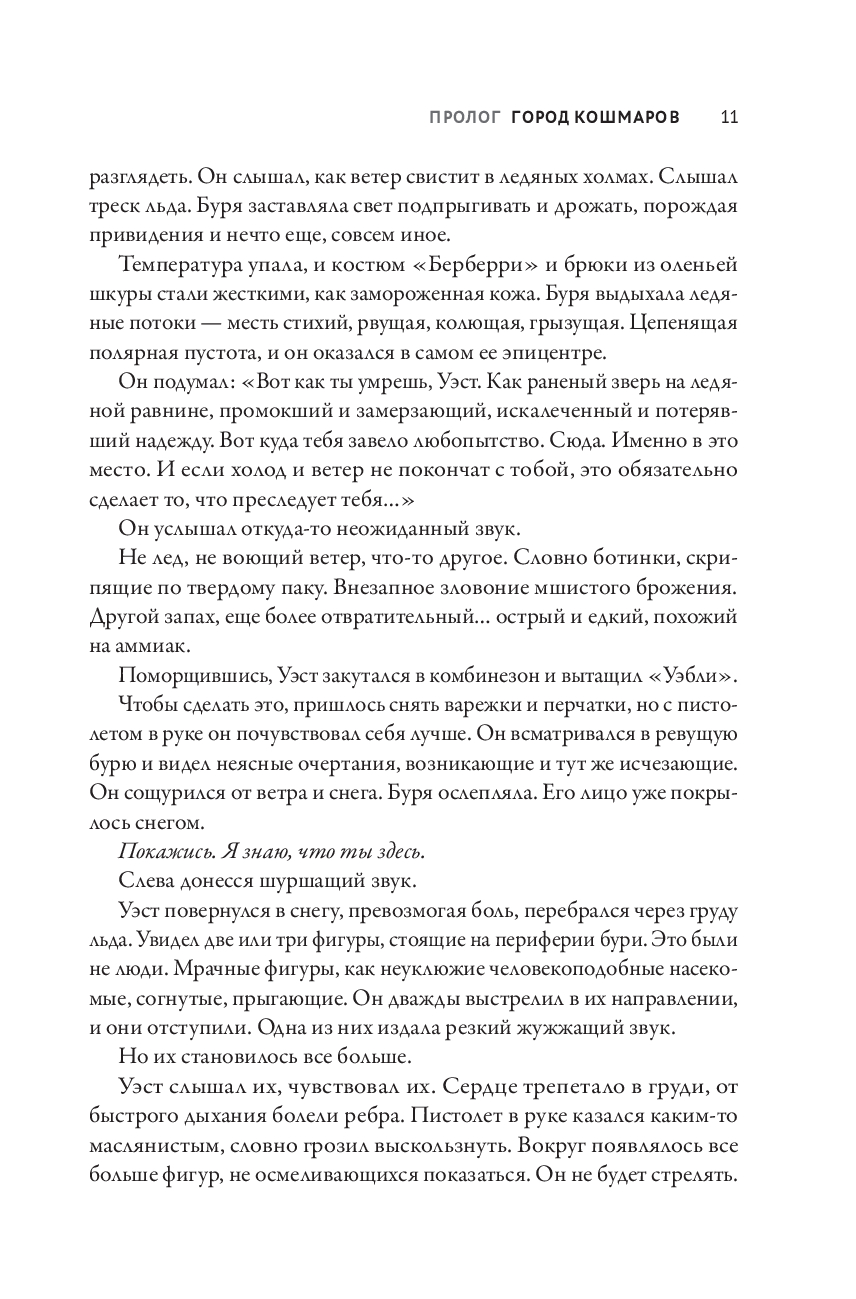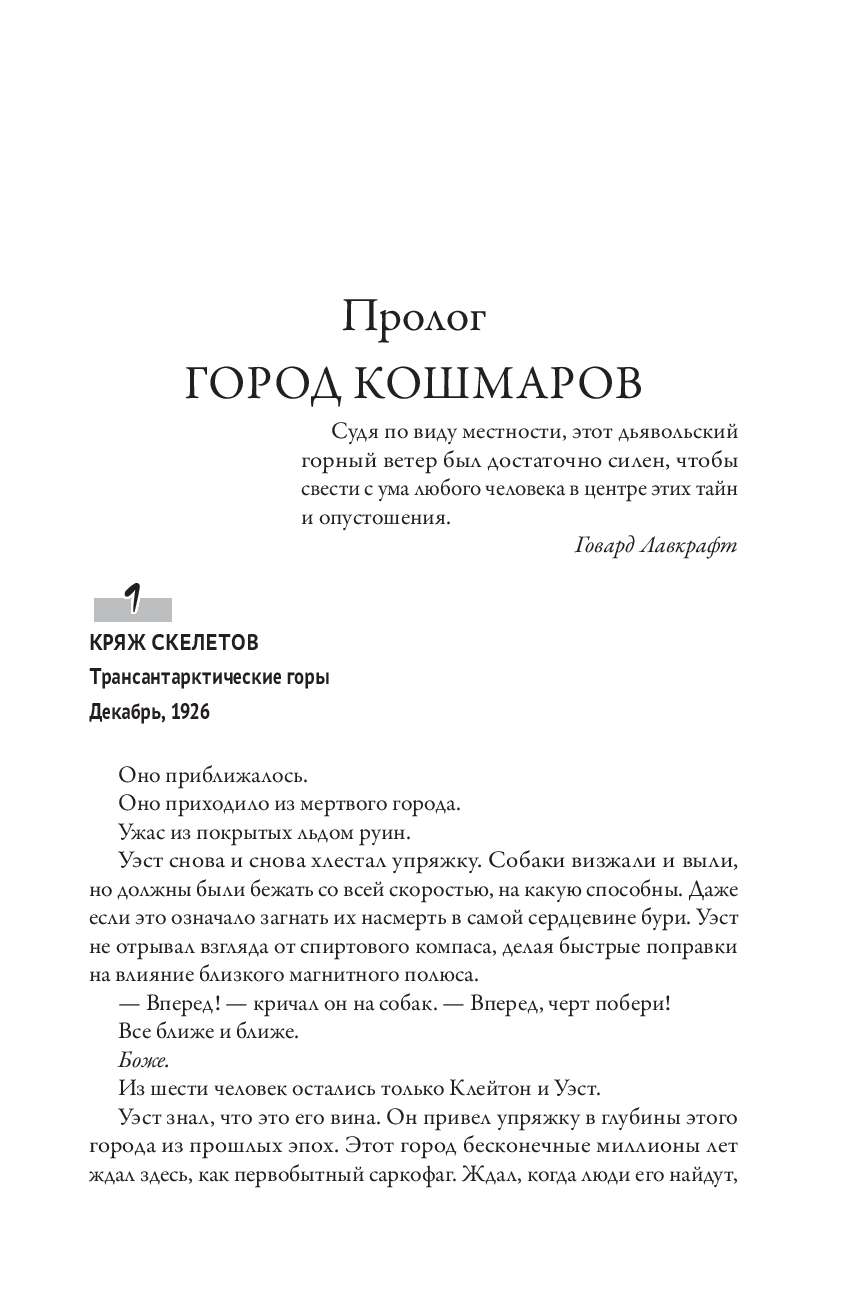Блестящее продолжение культового романа Говарда Филлипса Лавкрафта "Хребты безумия " от мастера ужасов Тима Каррэна, сумевшего бережно сохранить атмосферу оригинала, привнеся в нес свой фирменный динамизм, жестокость и черный юмор. "Прекрасно воссозданная атмосфера изоляции, мрака и полной безысходности... У Каррэна определенно есть свой собственный голос, в отличие от большинства подражателей Лавкрафта" (oddlyweirdfiction.com).