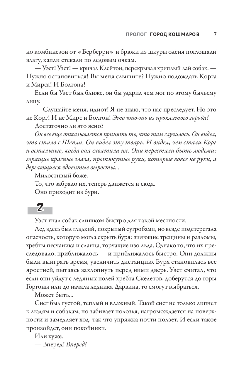 В бескрайней ледяной пустыне Антарктиды время будто остановило свой бег, смерть – это сон, и ничто не остается погребенным навечно. Темны и загадочны воды озера Вордог, их покой хранит ледяной щит, которому сорок миллионов лет, а в мрачных глубинах покоится куда более древний город, чей настоящий возраст неподвластен человеческому летоисчислению. Долгий ледяной сон подошел к концу, и первозданная тьма просыпается в затопленных руинах, неся смерть всему живому. То, что казалось забытой страшной легендой, становится реальностью. Неслышно скользят зловещие тени в ледяных подземных гробницах, на заброшенных аванпостах бродят призраки инопланетных существ, а безымянные и бесконечно мерзкие твари ползают среди руин дочеловеческих цивилизаций. Они ждали вечность, но даже вечность проходит, и теперь человечество – вымирающий вид.