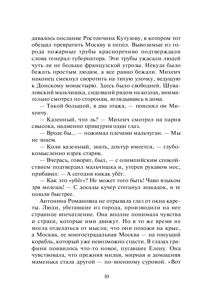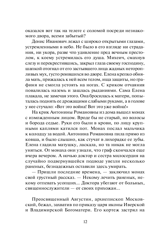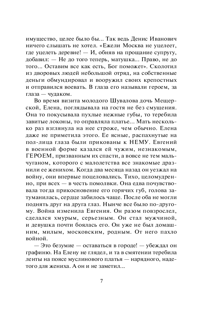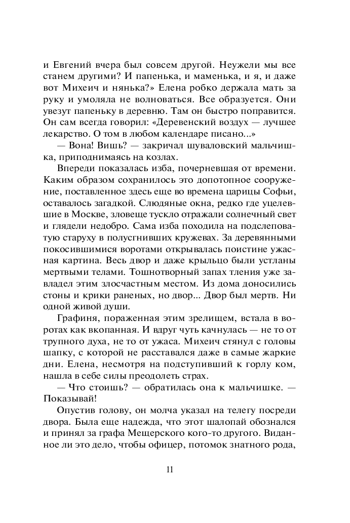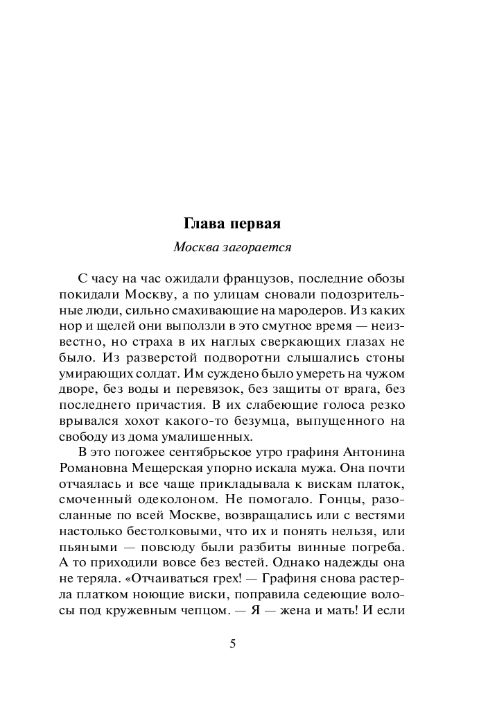 Действие первого романа начинается в 1812 году в Москве, в момент вступления французской армии. Юной героине, графине Елене Мещерской, потерявшей в московском пожаре семью, состояние и положение в обществе, предстоит преодолеть многочисленные трудности и научиться противостоять жестокой судьбе…