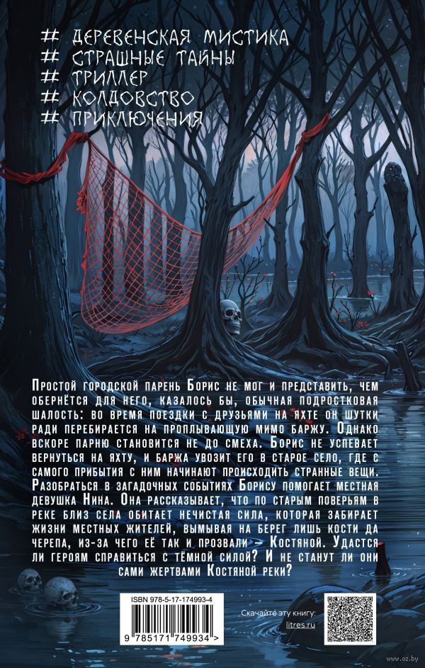 Простой городской парень Борис не мог и представить, чем обернётся для него, казалось бы, обычная подростковая шалость: во время поездки с друзьями на яхте он шутки ради перебирается на проплывающую мимо баржу. Однако вскоре парню становится не до смеха. Борис не успевает вернуться на яхту, и баржа увозит его в старое село, где с самого прибытия с ним начинают происходить странные вещи. Разобраться в загадочных событиях Борису помогает местная девушка Нина. Она рассказывает, что по старым поверьям в реке близ села обитает нечистая сила, которая забирает жизни местных жителей, вымывая на берег лишь кости да черепа, из-за чего её так и прозвали – Костяной. Удастся ли героям справиться с тёмной силой? И не станут ли они сами жертвами Костяной реки?