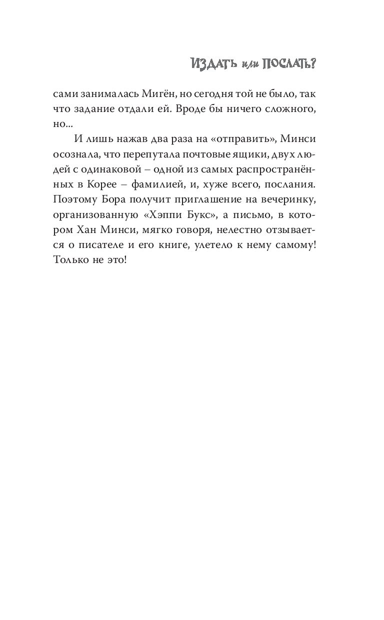 Хан Минси работает в издательстве "Хэппи Букс", которое является частью крупной книжной корпорации, и мечтает стать настоящим редактором. Но её карьера оказывается под угрозой из-за одной ошибки – письма, случайно отправленного не тому адресату. Минси решает всё исправить, ещё не зная, что привлечёт этим внимание директора издательства Ли Джунхо, а также молодого писателя, с которого всё и началось...