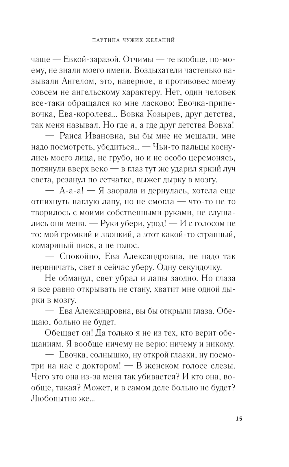 Воровать нехорошо. Но иногда бывает так трудно удержаться, когда вещь так и манит своей красотой и доступностью. Вытащив из кармана простоватой девушки странный медальон на тоненькой цепочке, Ева, сама не замечая того, глупой мухой угодила прямиком в паучьи сети. Теперь жизнь девушки принадлежит уже не ей. Тщательно плетет невидимый паук свой узор. Скоро паутина будет завершена. Времени осталось совсем немного.