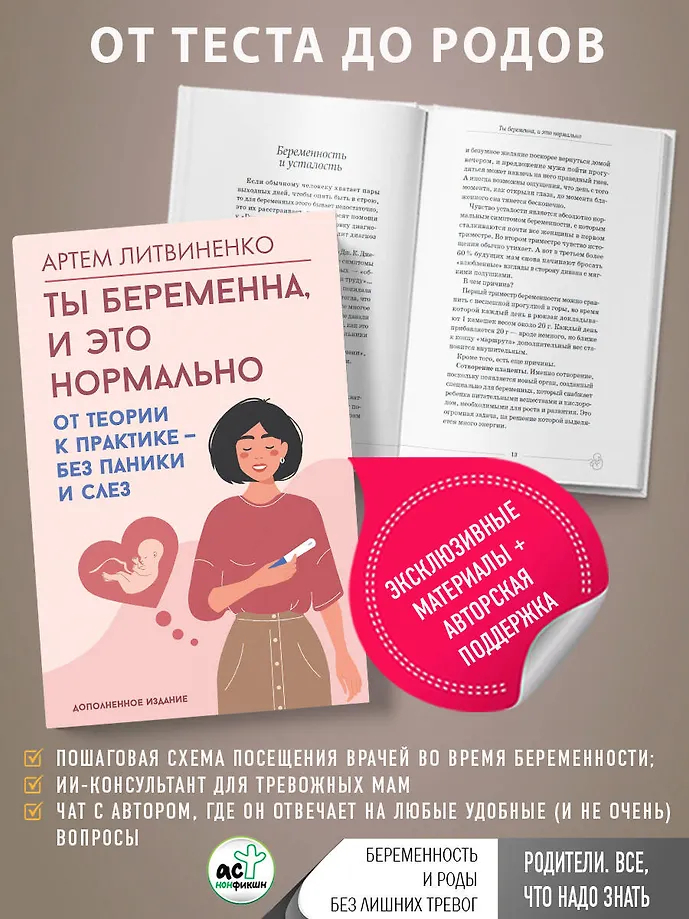 Доктор Артем Сергеевич Литвиненко просто и с юмором объяснит, что происходит с телом и эмоциями на каждом этапе беременности. Почему болит спина? Что делать с токсикозом? Когда пора бежать к врачу, а когда стоит просто выдохнуть и расслабиться?