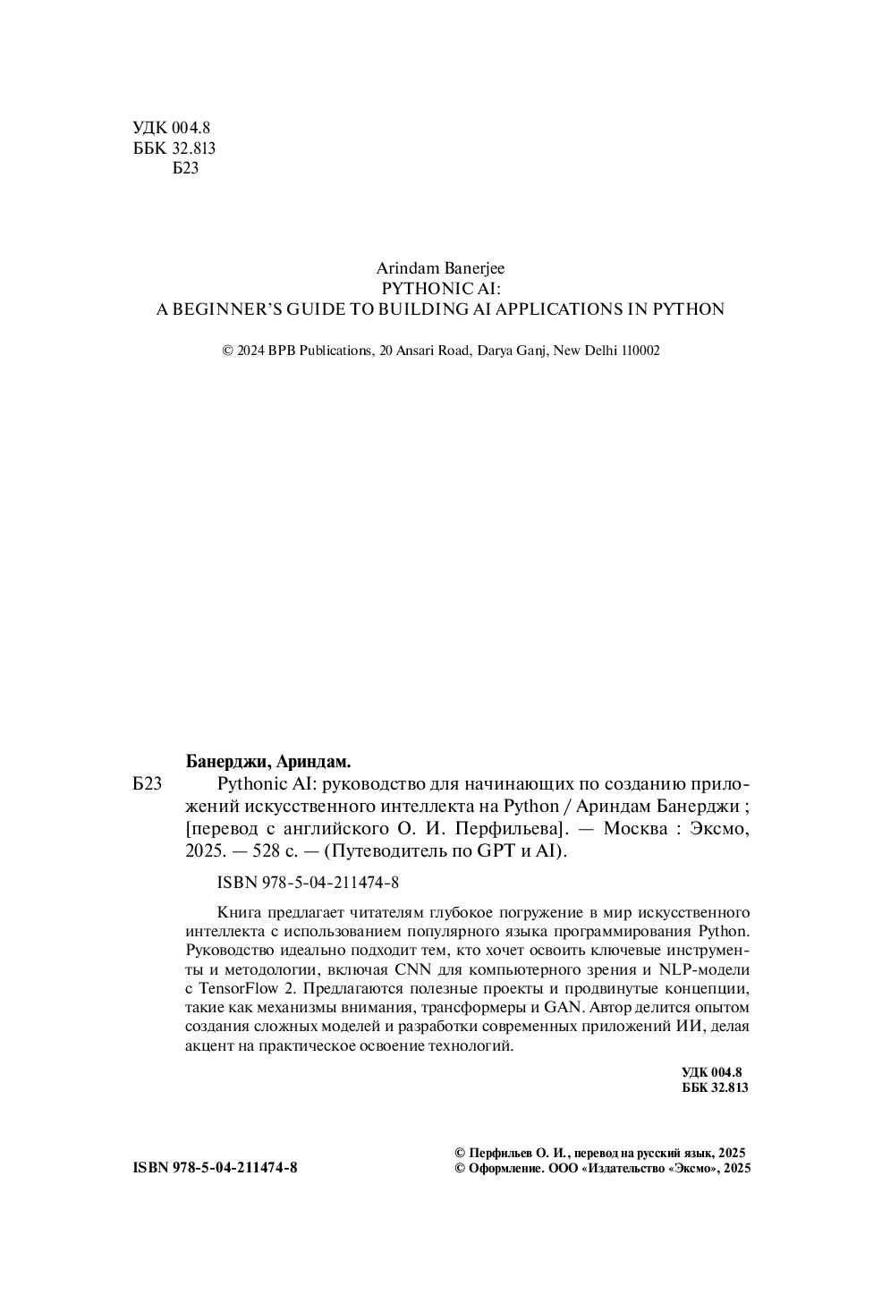 | Название в оригинале | Pythonic AI: A Beginner's Guide to Building AI Applications in Python |