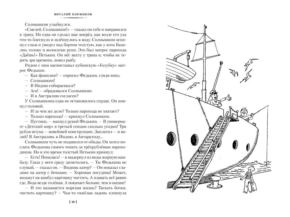 Весёлые повести о приключениях матроса Солнышкина и его друзей, об их необыкновенных плаваниях к берегам Камчатки, Антарктиды и к далёким тропическим островам автор писал более тридцати лет. Главный герой повестей Виталия Коржикова – мальчик из далёкой сибирской деревушки Алексей Солнышкин – всегда мечтал посмотреть мир. Поэтому, когда бабушка отправила его из тайги в ближайший город поступать в училище, мальчик уехал на край земли – в портовый город Океанск. Там оказалось, что в морское училище Солнышкин не годен – мал ещё, надо подрасти! Зато он попал матросом на пароход "Даёшь!". Жаль только, что капитан судна оказался отъявленным разгильдяем. На любой вопрос у него был один ответ: "Плавали – знаем!" С таким командиром немудрено сесть на мель. Однако юному искателю приключений любые трудности по плечу, ведь именно к такой жизни он и стремился – к жизни настоящего морского волка!