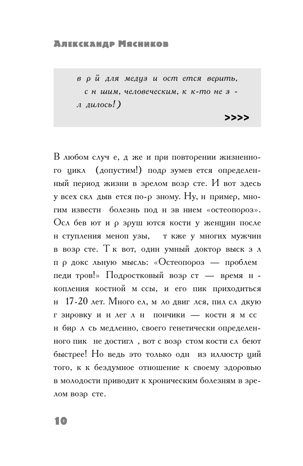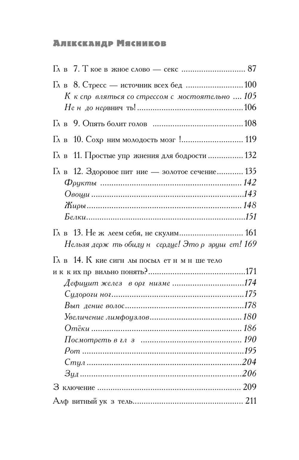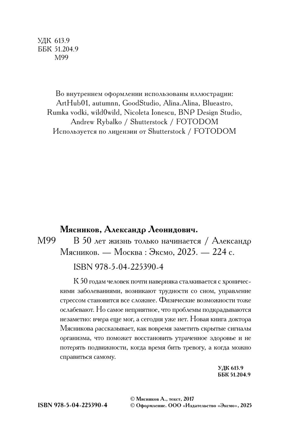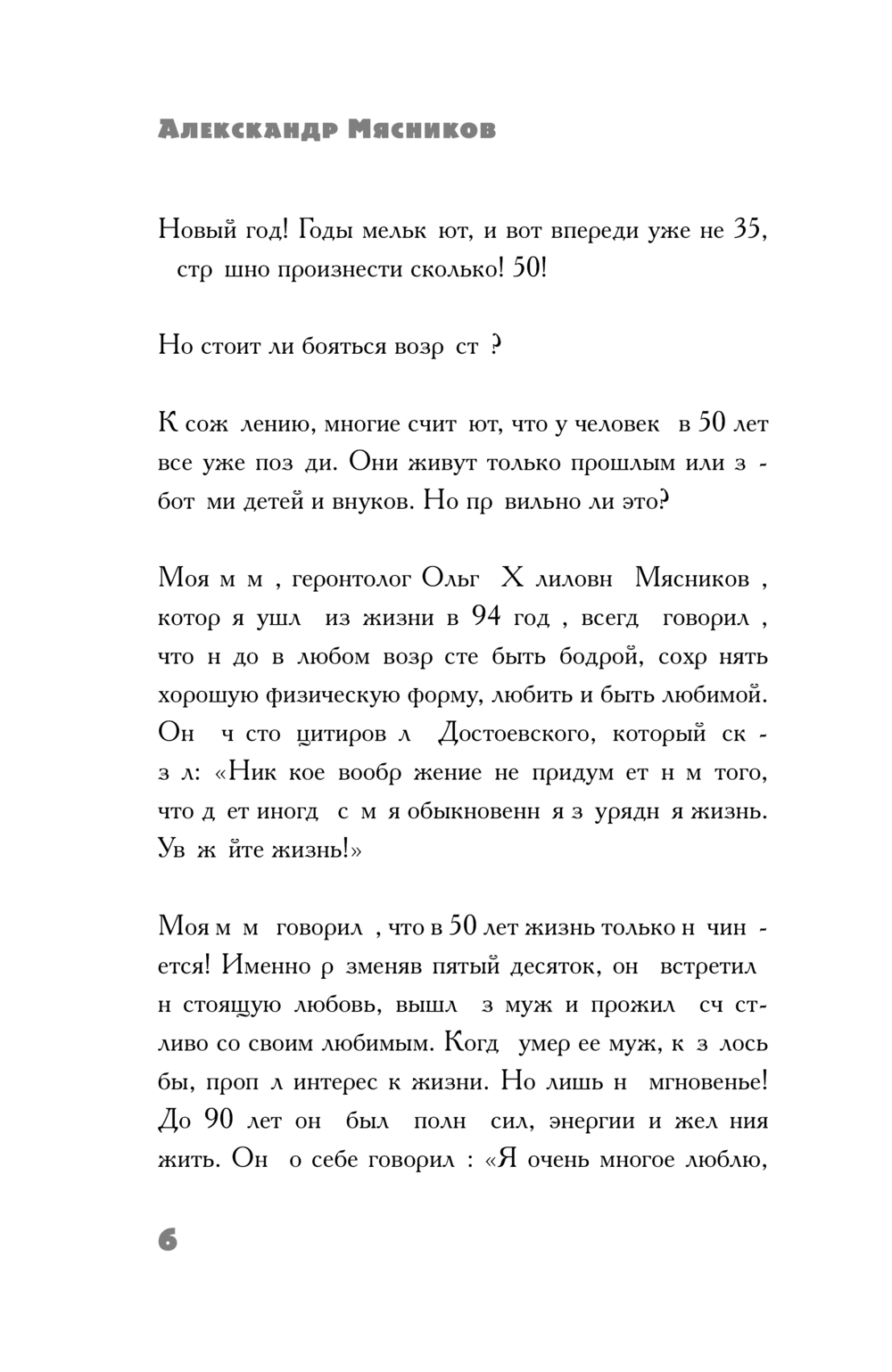 К 50 годам человек почти наверняка сталкивается с хроническими заболеваниями, возникают трудности со сном, управление стрессом становится все сложнее. Физические возможности тоже ослабевают. Но самое неприятное, что проблемы подкрадываются незаметно: вчера еще мог, а сегодня уже нет. Новая книга доктора Мясникова рассказывает, как вовремя заметить скрытые сигналы организма, что поможет восстановить утраченное здоровье и не потерять подвижности, когда время бить тревогу, а когда можно справиться самому.