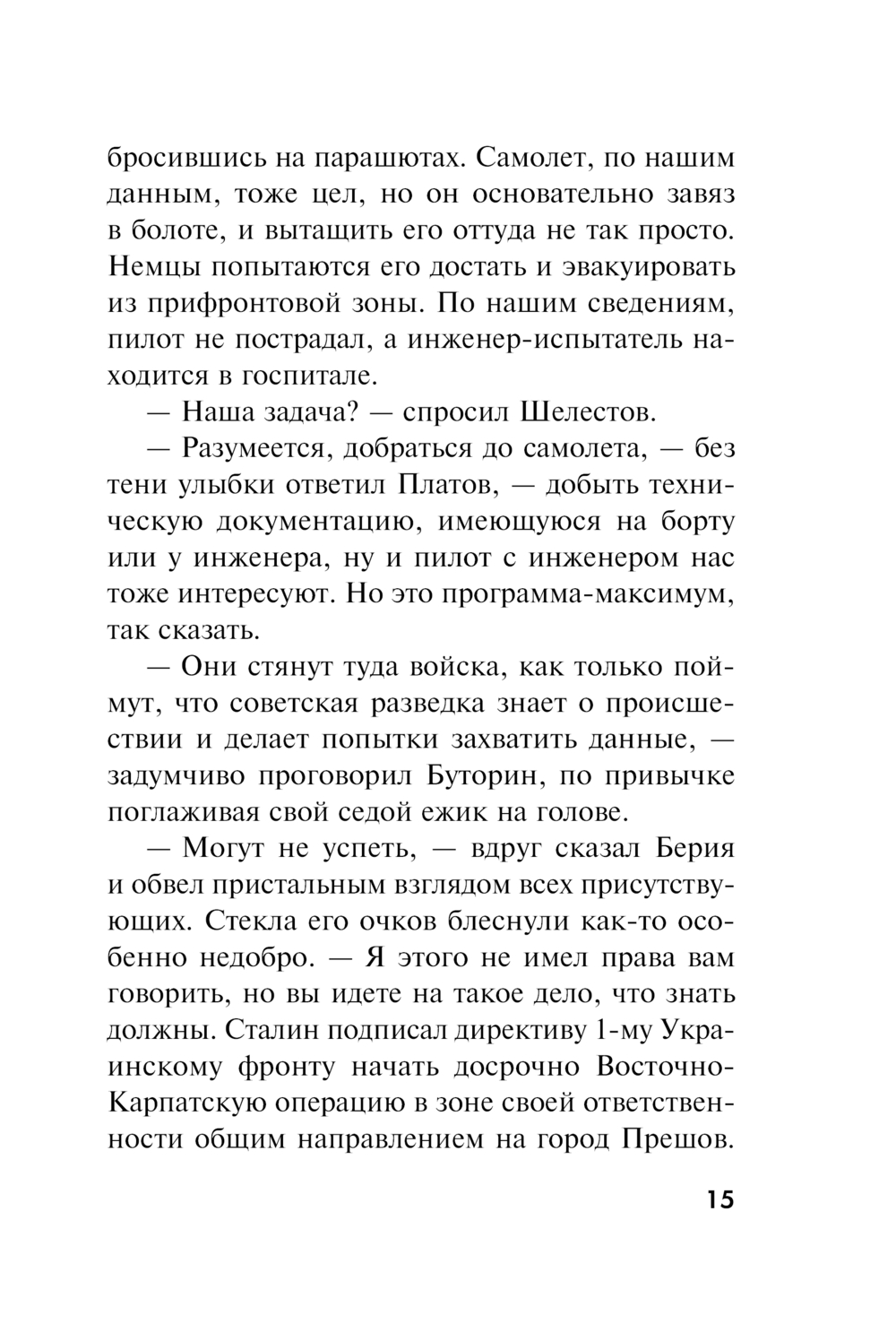 1944 год. В небе над Словакией фашисты проводят испытания нового образца реактивного истребителя. Однако во время полета двигатель отказывает, и опытная модель самолета падает в болото. Летчику и бортинженеру удается выпрыгнуть с парашютом. Узнав об аварии, советская контрразведка решает захватить упавшую машину и направляет в район крушения группу спецназа подполковника Максима Шелестова. Тем временем спасшегося бортинженера абвер планирует переправить в Германию вместе с его секретным отчетом об испытаниях. Узнав об этом, Шелестов без промедления предлагает товарищам дерзкий план...