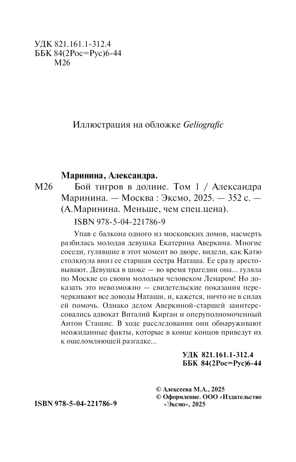 | Серия | А. Маринина. Меньше, чем спец.цена |
