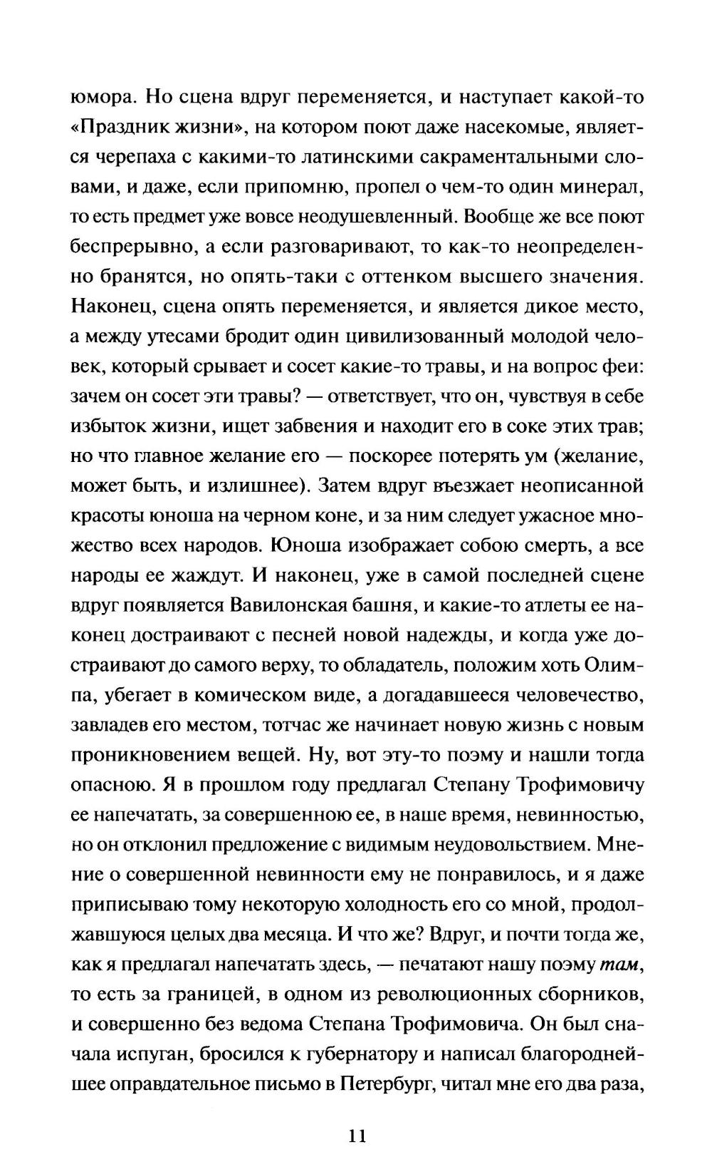 Ф.М. Достоевский написал "Бесов", чтобы заглянуть в душу молодых революционеров, но в итоге роман перерос в настоящий психологический триллер, который не только увлекает читателя, но и приоткрывает ему самое сердце кружка заговорщиков. В маленьком провинциальном городе все спокойно шло своим чередом до тех пор, пока не вернулись домой демонический красавец Николай Ставрогин и хитрец Петр Верховенский. Первый – мрачен и молчалив, второй – проворен и коварен. Каждый хранит свои тайны. В это время начинается подготовка к большому празднику.