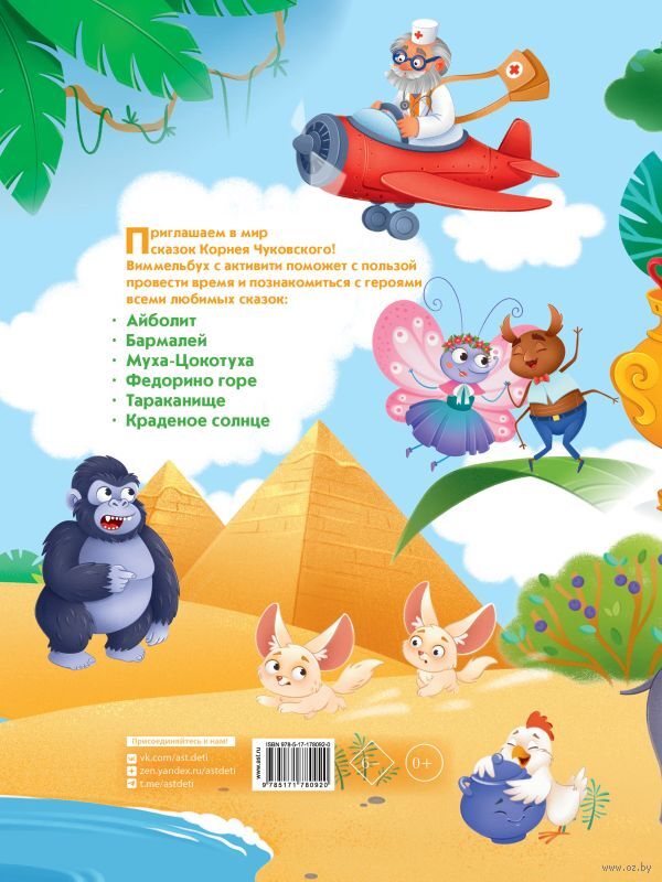 Приглашаем в мир сказок Корнея Чуковского. Виммельбух с активити поможет с пользой провести время и познакомиться с героями всеми любимых сказок: Айболит, Бармалей, Муха-Цокотуха, Федорино горе, Тараканище, Краденое солнце.