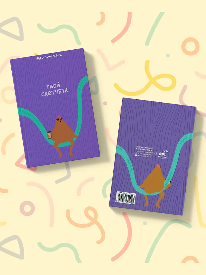 Альбом для скетчинга от @сuravamnedura. Компактный формат 13,6×20,6 см, с плотными белыми 96 страницами (офсет 120 гр.), со вставкой из картона в конце скетчбука для удобного рисования.