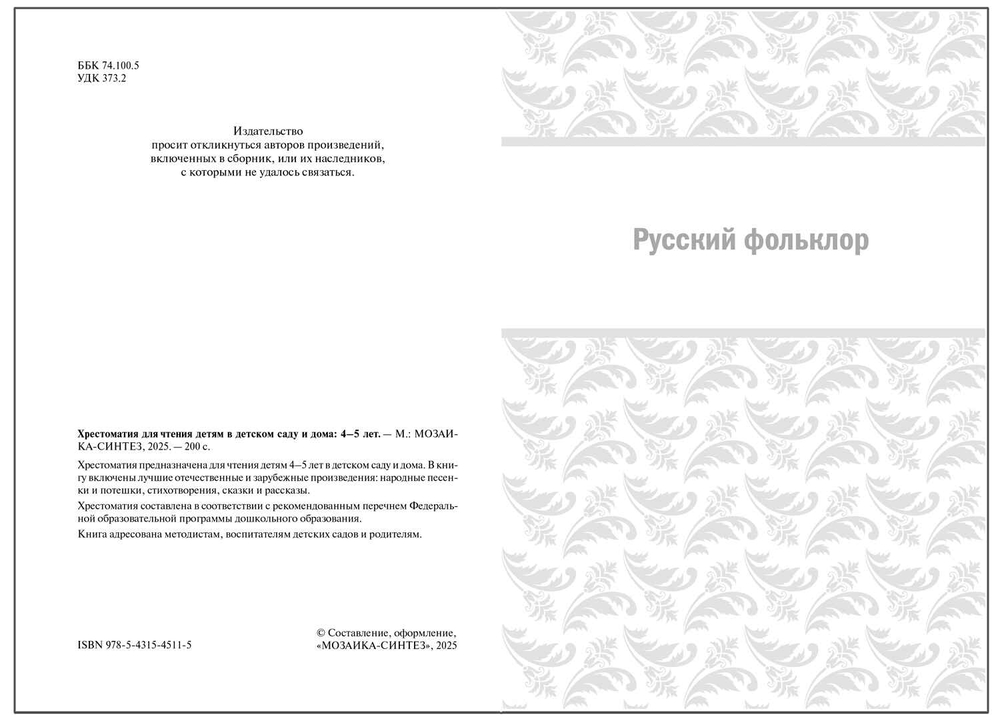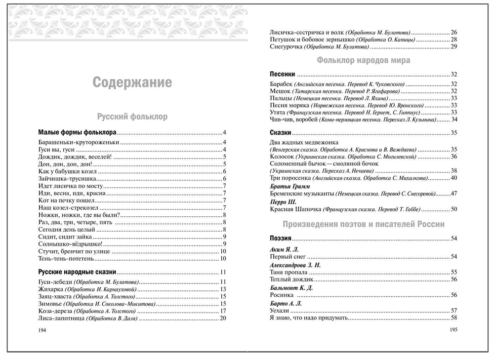Хрестоматия составлена в соответствии с рекомендованным перечнем Федеральной образовательной программы дошкольного образования.