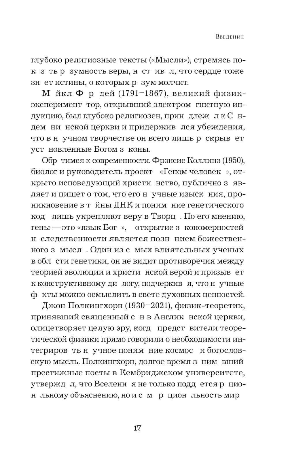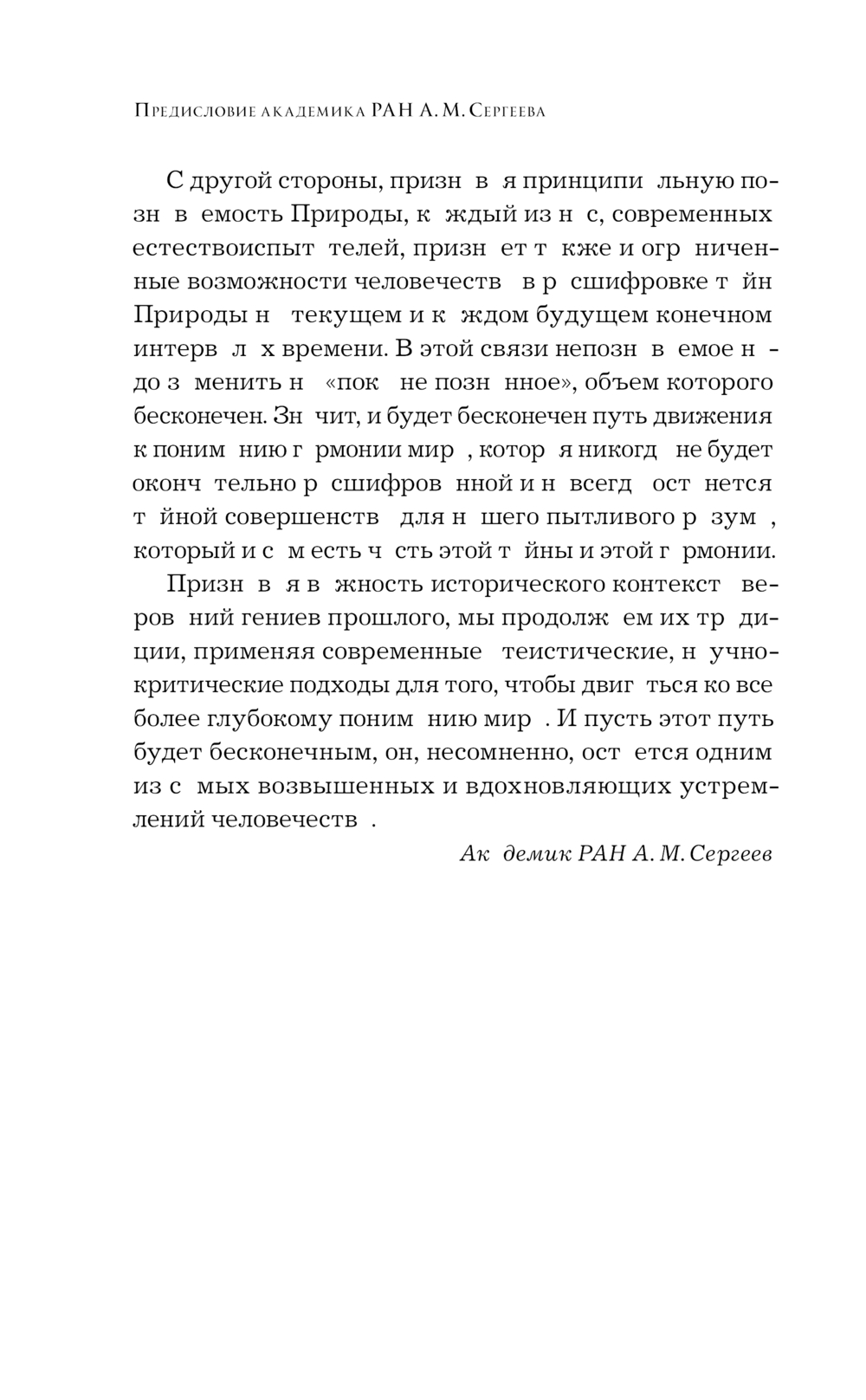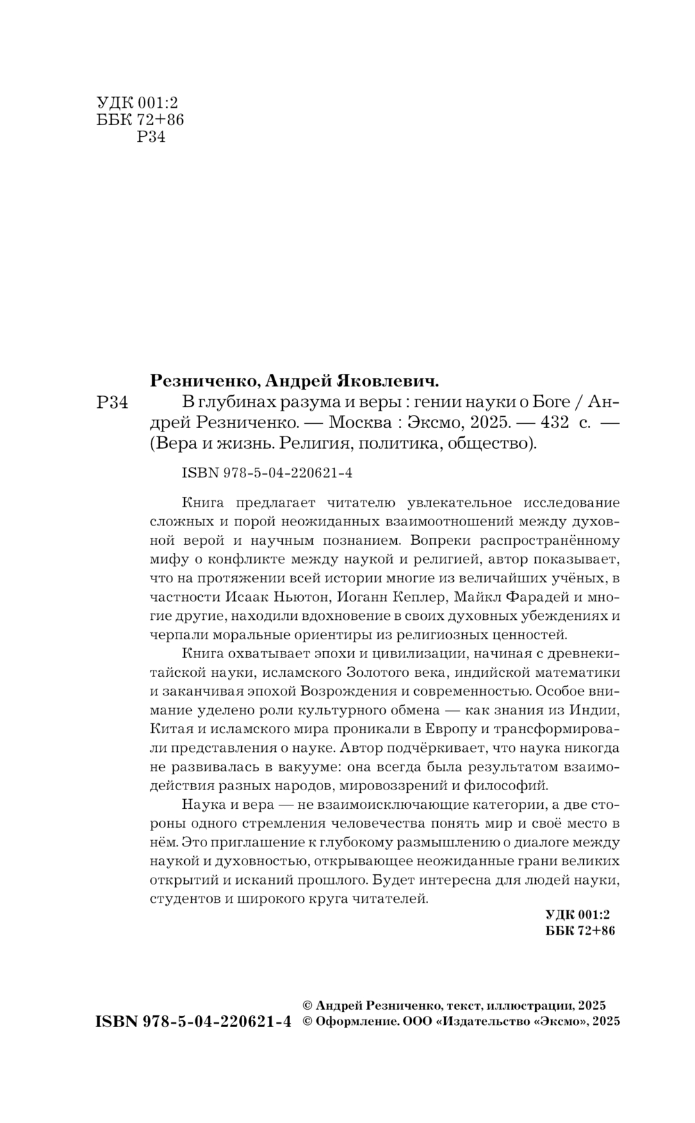 Книга предлагает читателю увлекательное исследование сложных и порой неожиданных взаимоотношений между духовной верой и научным познанием. Вопреки распространённому мифу о конфликте между наукой и религией, автор показывает, что на протяжении всей истории многие из величайших учёных, в частности Исаак Ньютон, Иоганн Кеплер, Майкл Фарадей и многие другие, находили вдохновение в своих духовных убеждениях и черпали моральные ориентиры из религиозных ценностей.