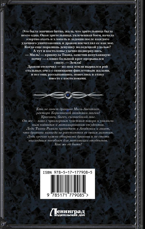 Кто не знает дракона Миль-Авентиса, ректора Королевской академии магии? Красавец, богач, сильнейший маг. Он же – язва с чрезмерным чувством юмора и уникальным подходом к мотивированию студентов. Леди Тиана Риваль преподает в Академии и знает, что драконы никогда не расстаются со своим золотом. Леди срочно нужно обокрасть дракона и не стать наглядным пособием для мотивации студентов. Как же ей быть?