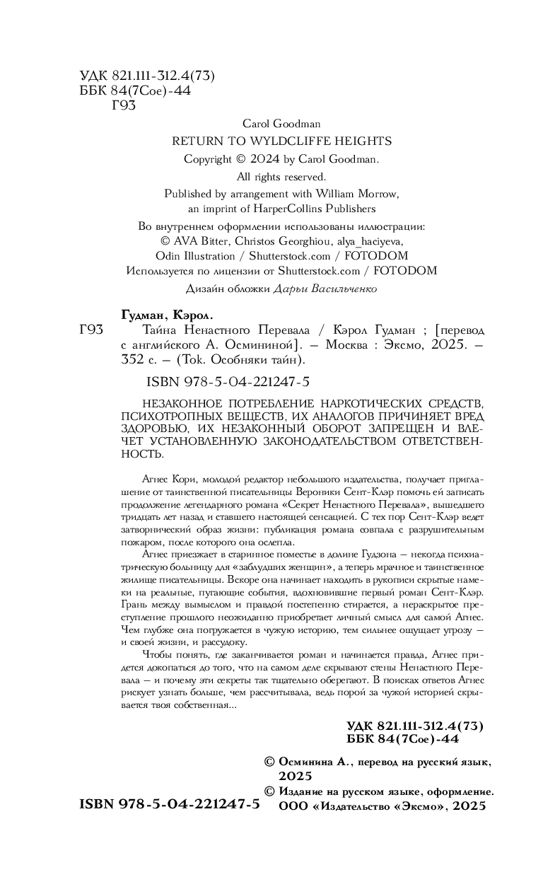 Чтобы понять, где заканчивается роман и начинается правда, Агнес придется докопаться до того, что на самом деле скрывают стены Ненастного перевала – и почему эти секреты так тщательно оберегают. В поисках ответов Агнес рискует узнать больше, чем рассчитывала, ведь порой за чужой историей скрывается твоя собственная....