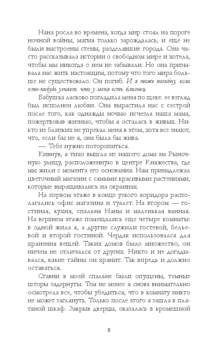 Авиана Блум – ночная фейри и повелительница теней. Таких, как она, боятся, преследуют и убивают. Чтобы скрыть свою истинную сущность, девушка вынуждена выдавать себя за сестру-близнеца Ану – без права на собственную жизнь и чувства.