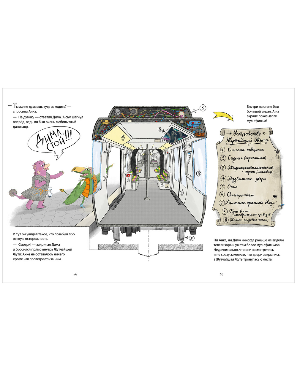 Удивительные красочные и детализированные иллюстрации этой Clever книги превращают ее в виммельбух – картинки хочется разглядывать снова и снова. Юмор и легкость текста известного писателя Алексея Лисаченко понравятся школьникам и подросткам, читающим интересные книги, книги детские с закрученным сюжетом, книги для детей и подростков о расследованиях и серию про динозавров-детективов.