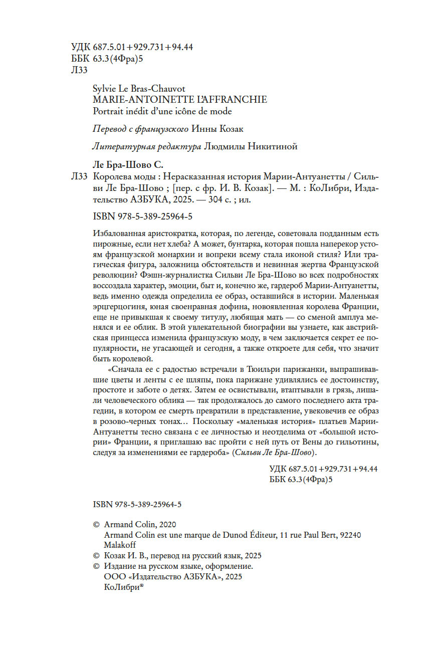 | Название в оригинале | Marie-Antoinette L'affranchie. Portrait Inédit D'une Icône De Mode |