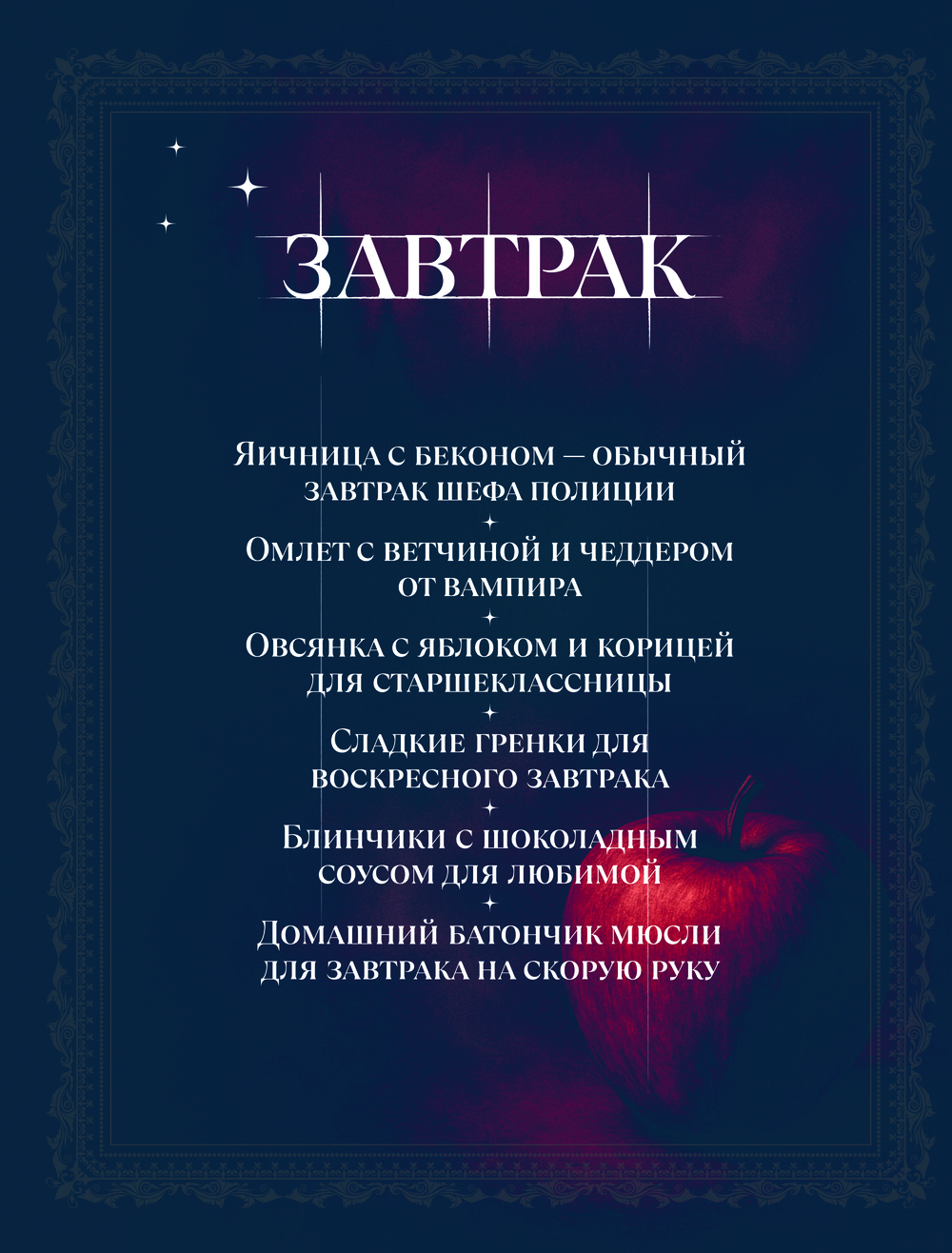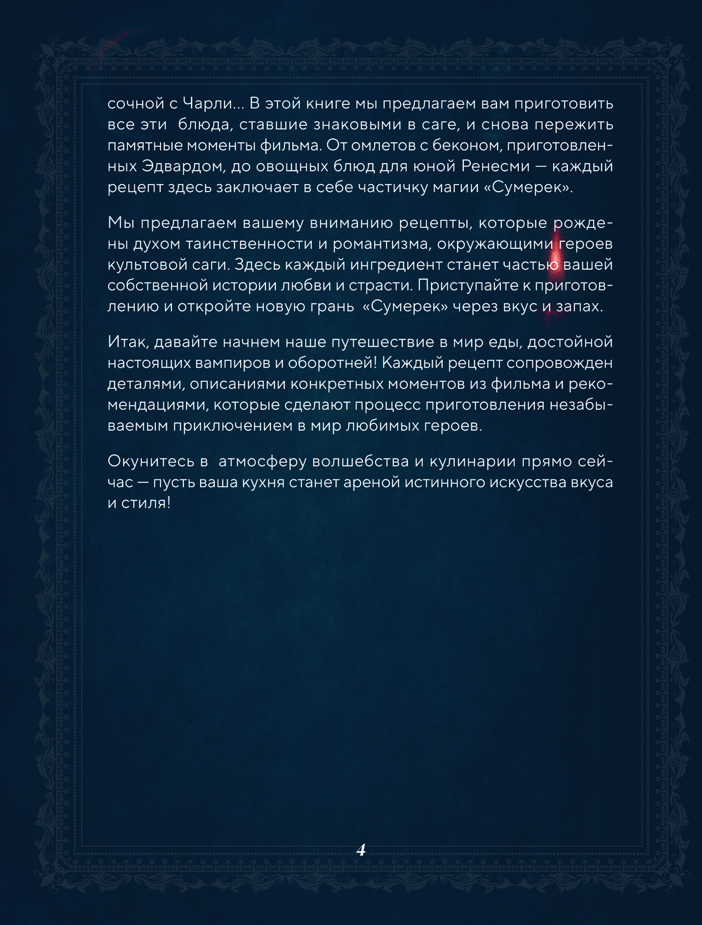 Кулинарная книга – повод вспомнить любимую историю, снова погрузиться в таинственную, мрачную, загадочную, но такую уютную атмосферу сверхъестественного мира вампиров и оборотней, встретить любимых персонажей и пережить с ними важные моменты через еду.