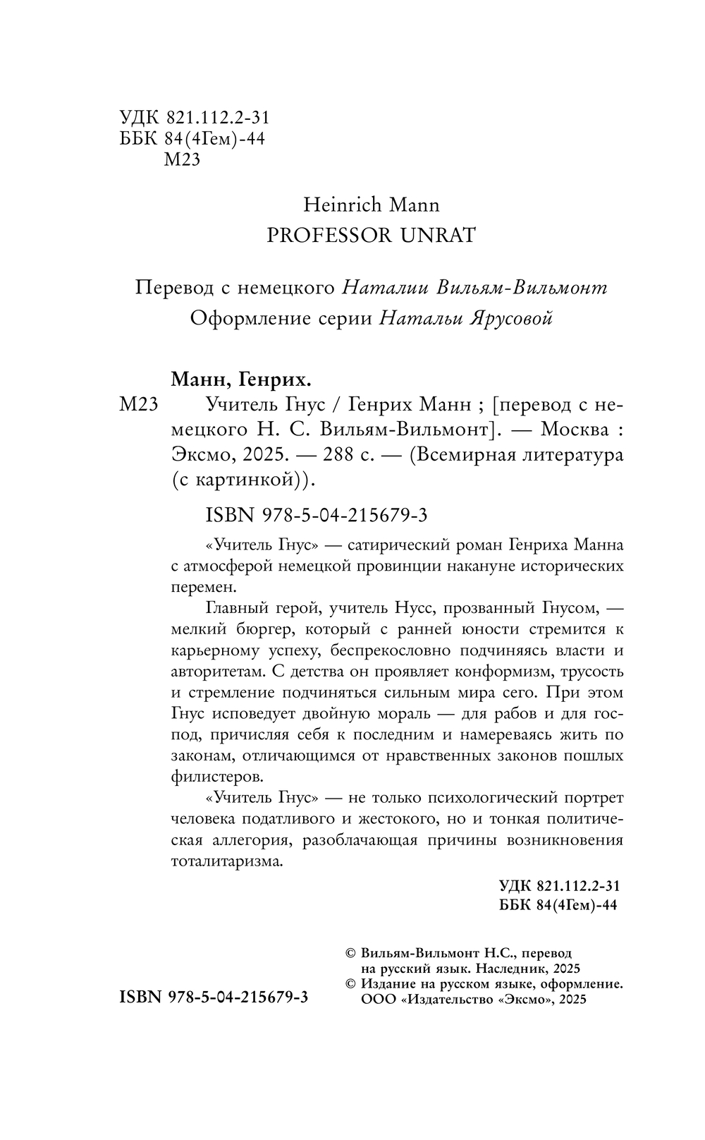"Учитель Гнус" – сатирический роман Генриха Манна с атмосферой немецкой провинции накануне исторических перемен.