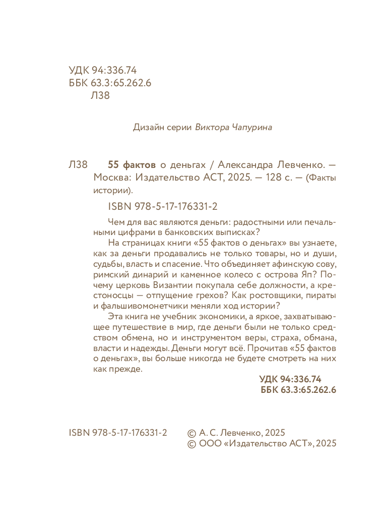Эта книга не учебник экономики, а яркое, захватывающее путешествие в мир, где деньги были не только средством обмена, но и инструментом веры, страха, обмана, власти и надежды. Деньги могут всё. Прочитав "55 фактов о деньгах", вы больше никогда не будете смотреть на них как прежде.