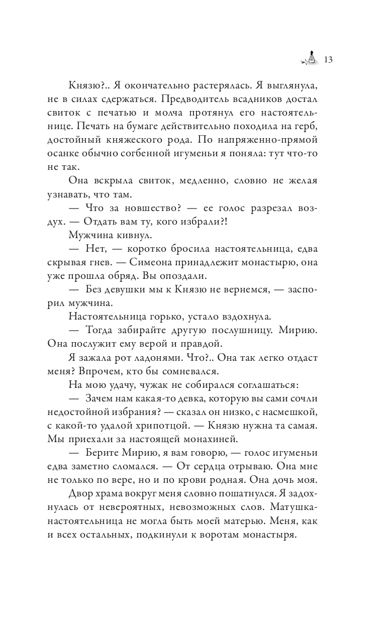 Жизнь Мирии в монастыре была суровой, но предсказуемой… Пока ее не увезли к смертельно больному князю. Князь Вирланд – чудовище с изувеченными телом и душой. За его спиной – целое кладбище монахинь, каждая из которых пыталась исцелить его, но потерпела неудачу. Теперь и Мирия обречена повторить их судьбу.