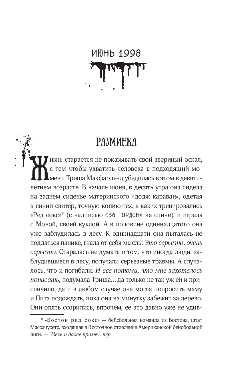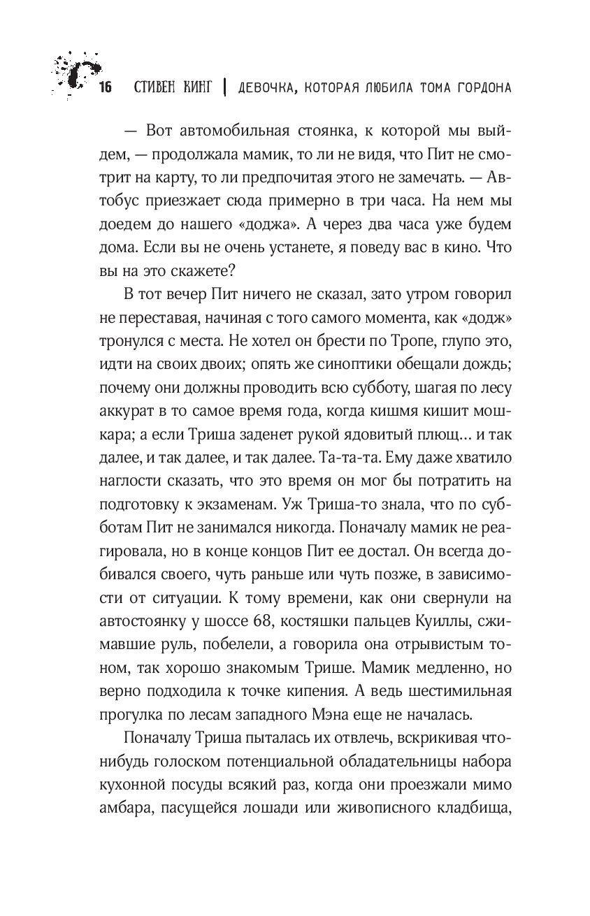 Книга потрясающая! Один из страхов каждого человека - потеряться в лесу, большом дремучем, когда сходишь с известной тропинки и попадаешь в незнакомое место, а оборачиваясь - не находишь дорогу назад… Это история девочки, потерявшейся, но сильный характер не дает ей просто и легко погибнуть… Как и Том Гордон. Рекомендую!