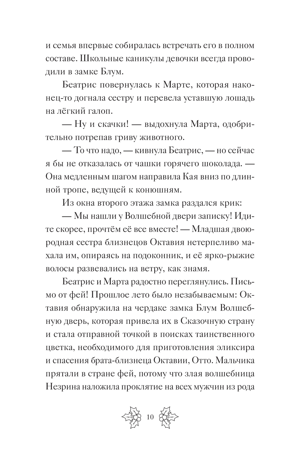 Зимние каникулы девочки всегда проводят у бабушки. В этом году они особенно взволнованы, ведь всю семью пригласили на свадьбу в мире фей. Беатрис сомневается в том, стоит ли возвращаться, ведь в прошлый раз за Волшебной дверью таилось множество опасностей…