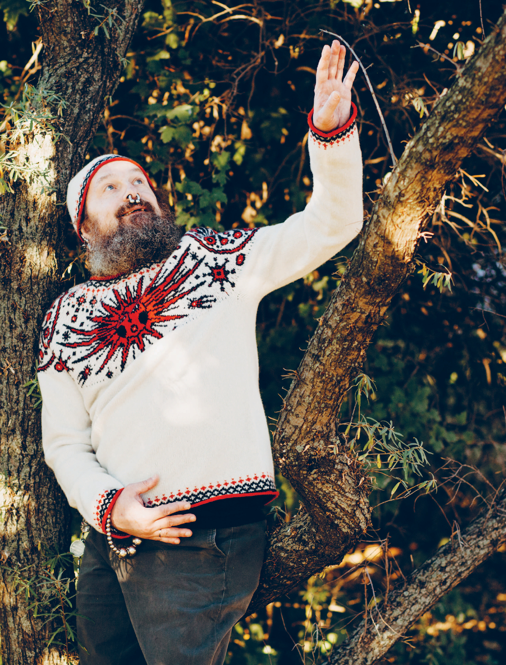 В основе этой коллекции – уникальная техника панорамного жаккарда, где рисунки охватывают кокетку свитера как круговая фреска. Каждый проект – это законченный сюжет, вдохновленный мифологией, природой и искусством.