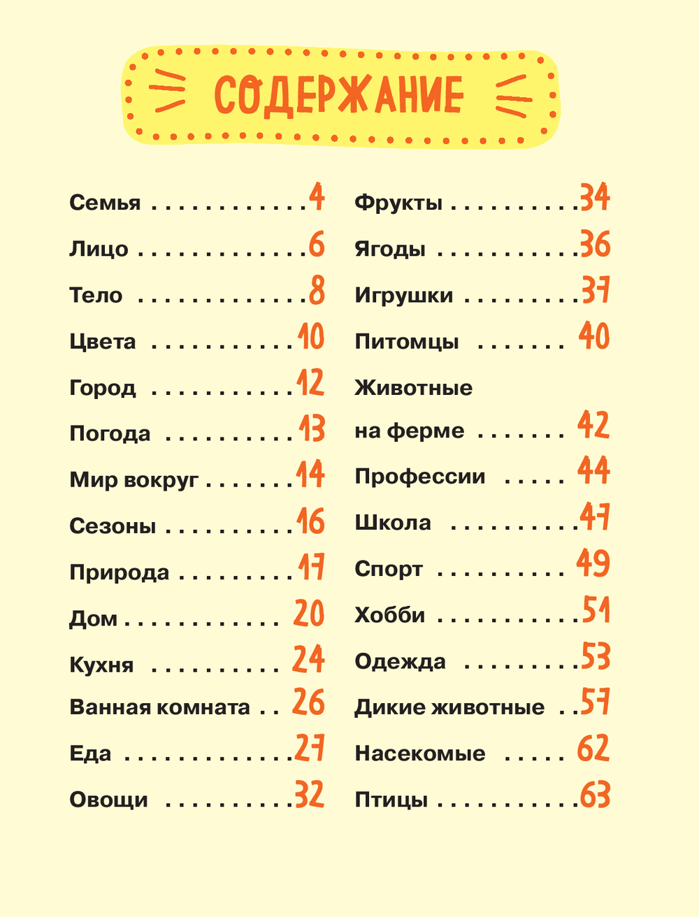 Словарь включает базовую лексику, разделённую на 27 тематических блоков: животные, природа, семья, еда, цвета и другие важные для ребёнка темы.