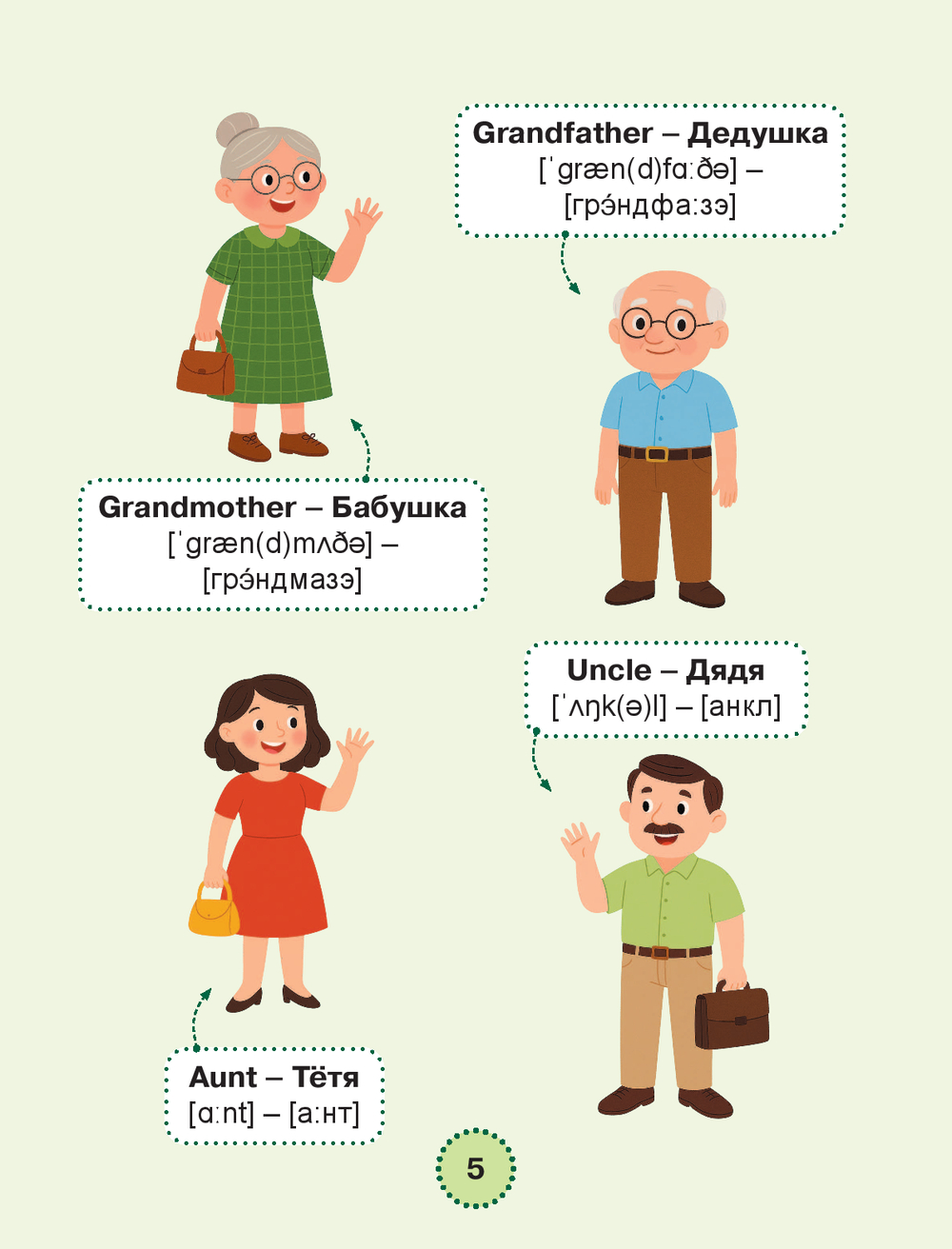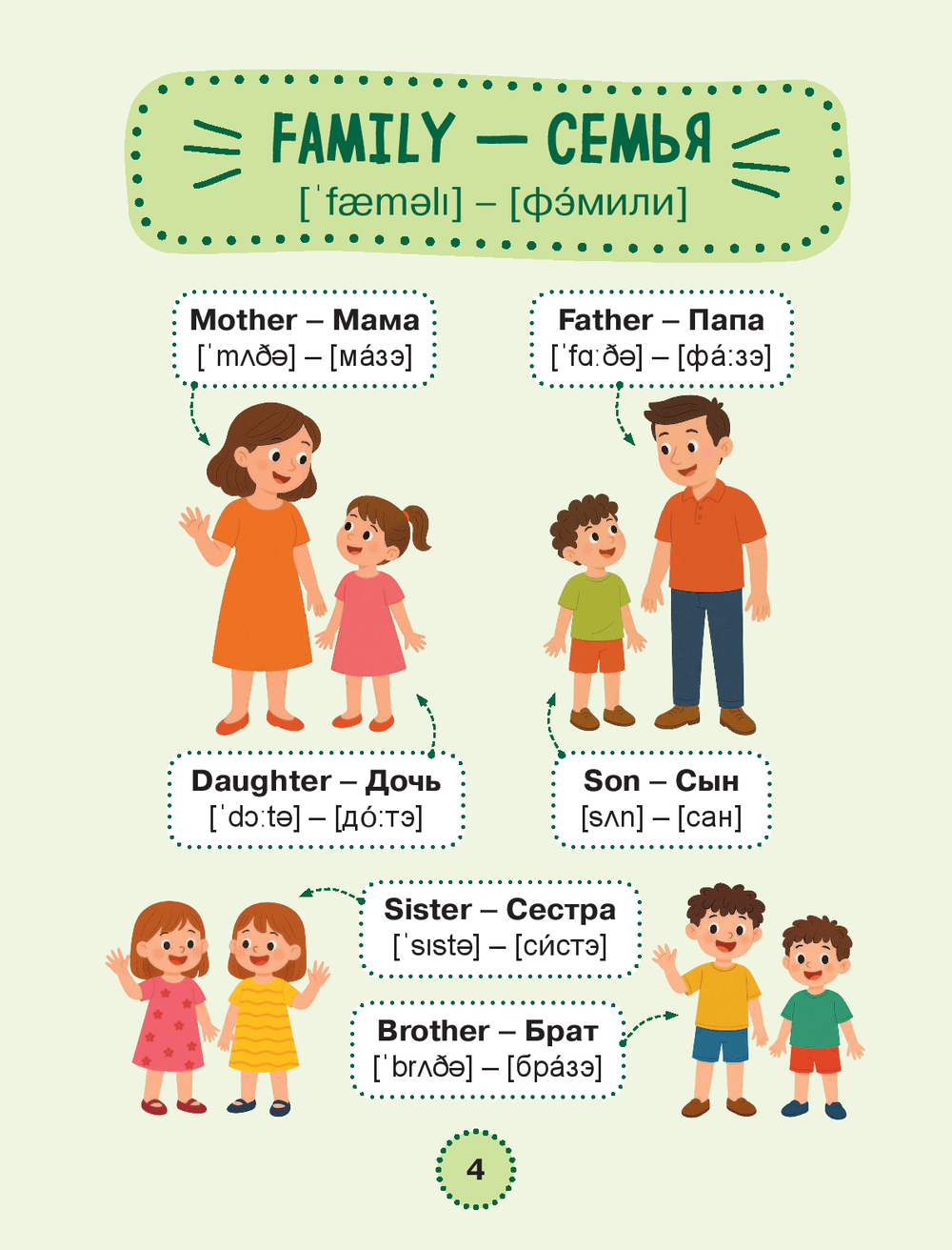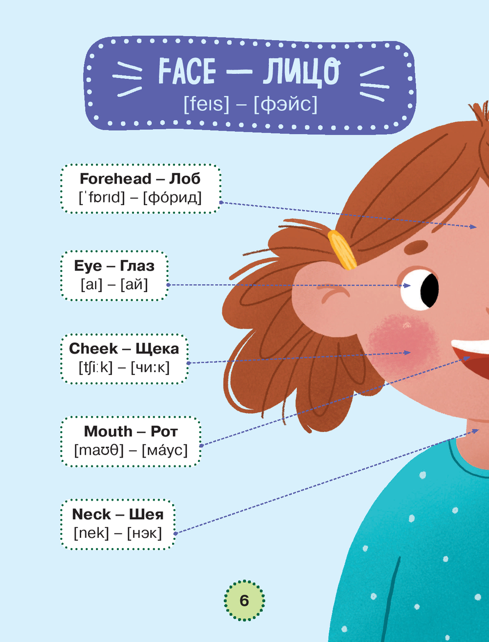 Каждое слово сопровождается переводом, транскрипцией на английском и русском языках, а также красочными авторскими иллюстрациями, которые делают запоминание лёгким, а обучение – увлекательным.