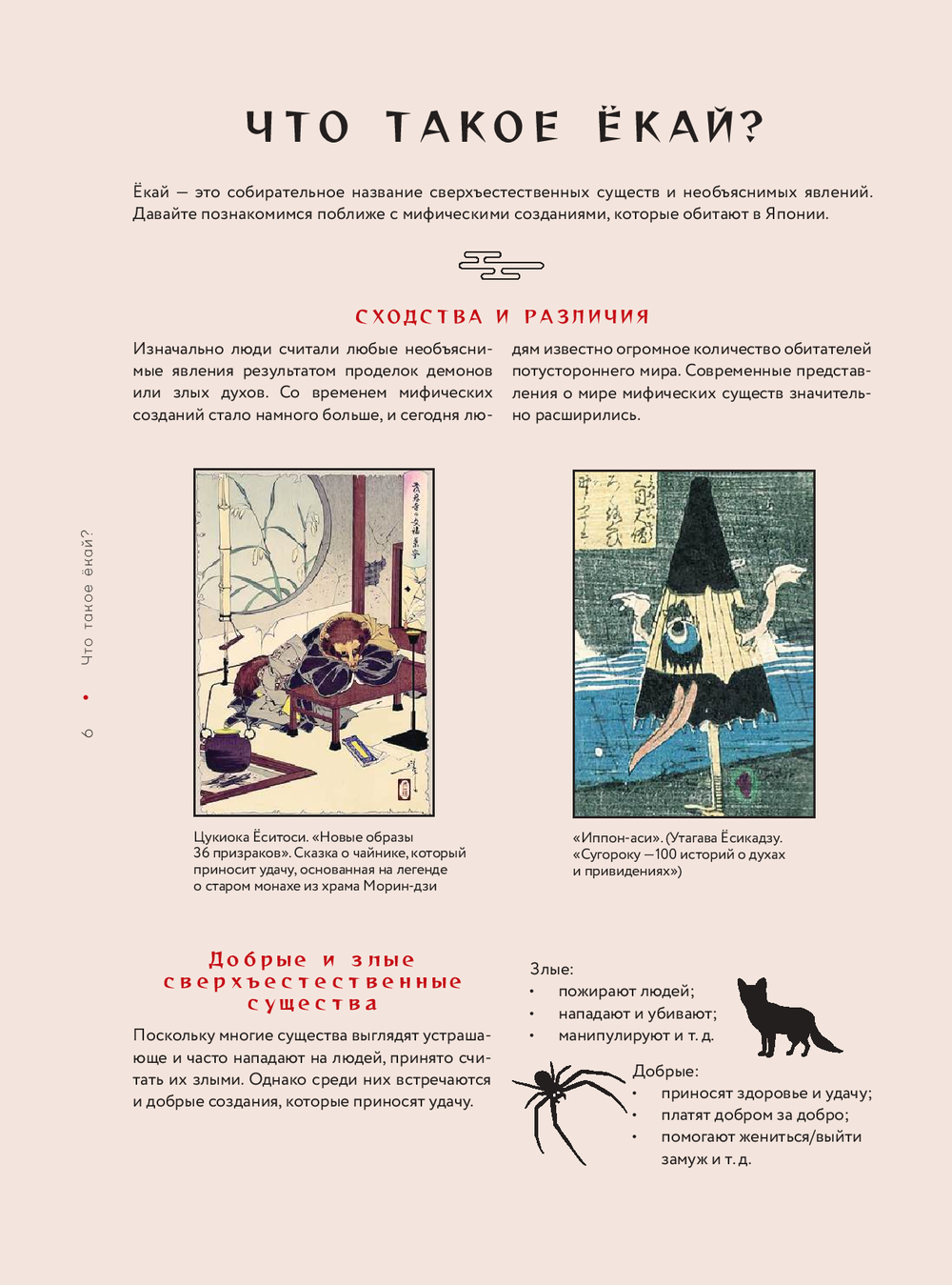 Они обитают в горах, лесах, морях, реках и даже во снах. Скрываются в заброшенных домах, заглядывают в окна, когда вы остаетесь в комнате одни, прячутся за мебелью, в темных углах или сырых подвалах, а по ночам выходят из своих убежищ. Это – ёкаи, духи и монстры японского фольклора, чей мир одновременно пугает и завораживает. Некоторые из них ужасают, другие защищают, третьи – просто играют с нами, как капризные дети потустороннего мира. Их бесконечно много, и у каждого – своя история, полная тайн.