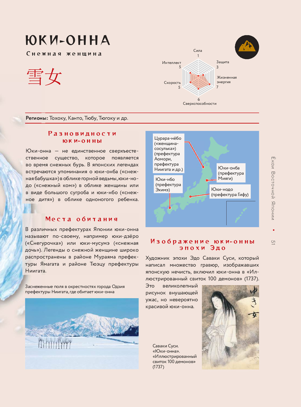 Этот артбук – приглашение в художественно-документальное путешествие в страну сверхъестественного. Через иллюстрации, гравюры, подробные характеристики, легенды и исторические факты вы узнаете о десятках существ со всей Японии. Озорной дзасики-вараси, устрашающий умибодзу, чарующая лисица кюби-но-кицунэ, прекрасная и опасная юки-онна и другие ёкаи оживут на страницах этого артбука через призму прошлого и настоящего.