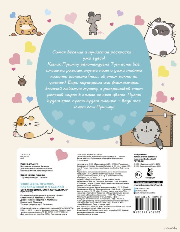 Бери карандаши или фломастеры, включай любимую музыку и раскрашивай этот уютный мирок в самые сочные цвета. Пусть будет ярко, пусть будет смешно – ведь так хочет сам Пушмяу!