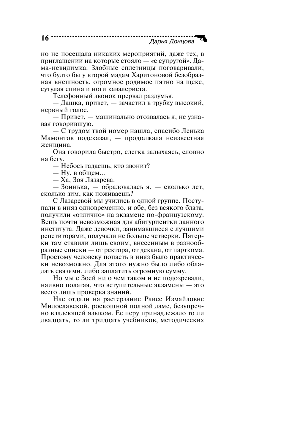 Один за другим погибают сокурсники Даши Васильевой… Вылетевший из-за угла "Фольксваген" подмял под колеса переходившую дорогу Зою Лазареву. Дважды проехав по безжизненному телу, машина умчалась прочь. Кто сидел за рулем этого автомобиля и не связан ли с этими убийствами таинственный Жок, на след которого по просьбе полковника МВД Дегтярева пытается выйти отчаянная любительница частного сыска Даша Васильева?..