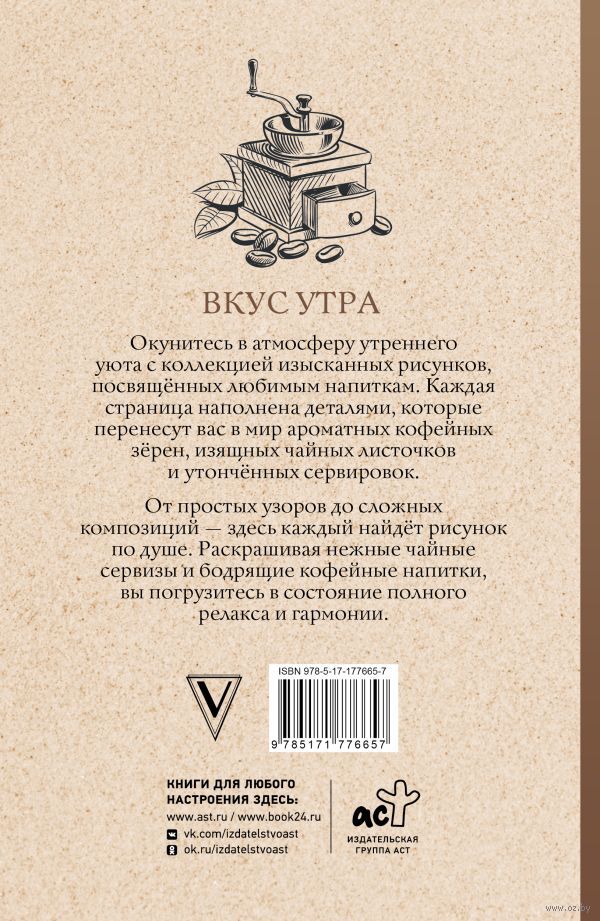Окунитесь в атмосферу утреннего уюта с коллекцией изысканных рисунков, посвящённых любимым напиткам. Каждая страница наполнена деталями, которые перенесут вас в мир ароматных кофейных зёрен, изящных чайных листочков и утончённых сервировок.