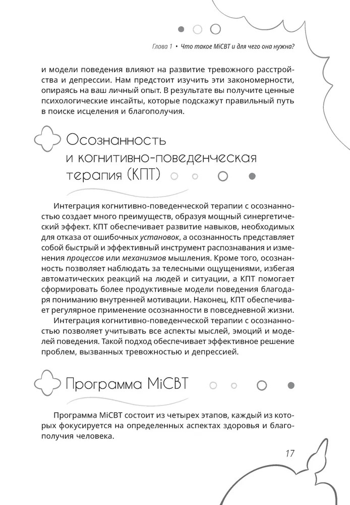 Книга является практическим руководством, созданным для того, чтобы помочь читателям укрепить свою психологическую устойчивость и преодолеть жизненные трудности. С её помощью читатель развивает осознанность, используя методы когнитивно-поведенческой терапии (КПТ), что позволяет лучше понимать свои чувства и эмоции и управлять ими.