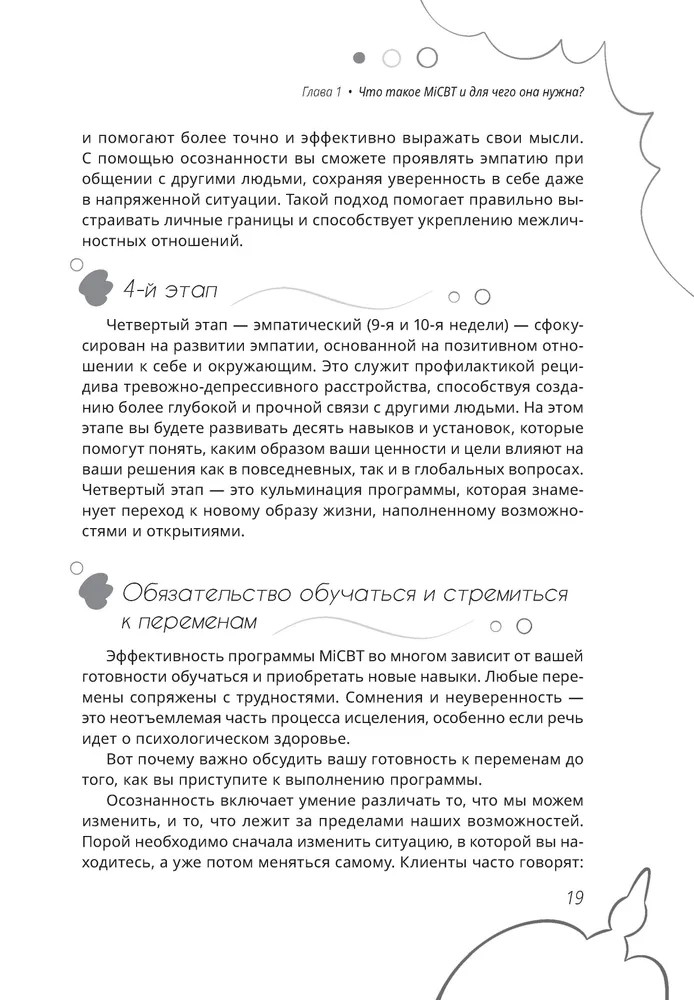 Программа разбита на 10 недель, каждая из которых посвящена определённым навыкам, что делает процесс обучения структурированным и последовательным. За это время читатель научится распознавать свои чувства и находить способы их регулирования.