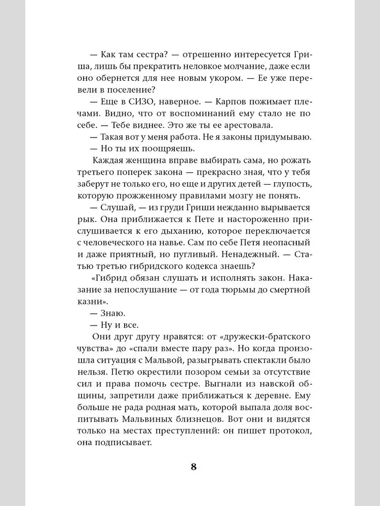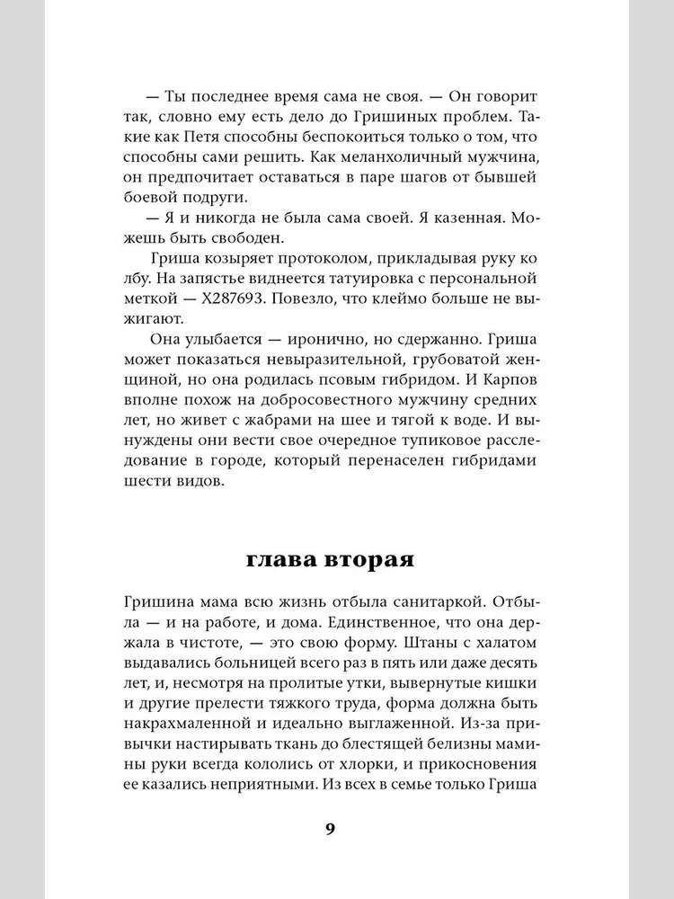 "Славгород" – это небольшой самодостаточный роман, который погружает в альтернативную, но при этом очень реалистичную вселенную, как в ледяную прорубь. Как человеческие ценности конфликтуют с животными инстинктами? Так ли гибриды отличаются от людей или в условиях закрытого города любой бы озверел?