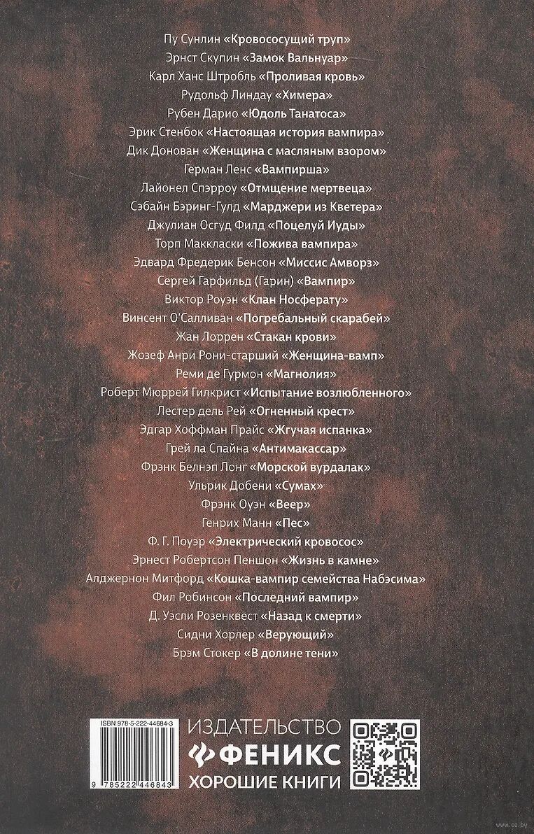 Отголоски легенд о мертвецах, встающих ночами из своих могил и пью¬щих кровь, можно встретить в культурах всего мира, включая самые древние. У них много имен: вампиры, упыри, вурдалаки, цзянши, стригои, ламии, носферату... Но под всеми этими именами скрывается одно и то же существо, жуткая немертвая тварь, что рыщет в ночной тьме, пытаясь утолить вечную жажду крови. Этот сборник – портал в шокирующий мир нежити, безумное путешествие по кровавым рекам ужаса. 34 классические истории о вампирах, большинство из которых являются библиографическими редкостями, либо переведены на русский язык впервые. Бесспорное украшение сборника – потрясающие атмосферные иллюстрации популярного хоррор-художника Дмитрия Храмцова. Прочтите и задумайтесь: быть может, легенды не лгут? И тогда, если однажды темной ночью одно из этих созданий постучит в вашу дверь, вы будете готовы.