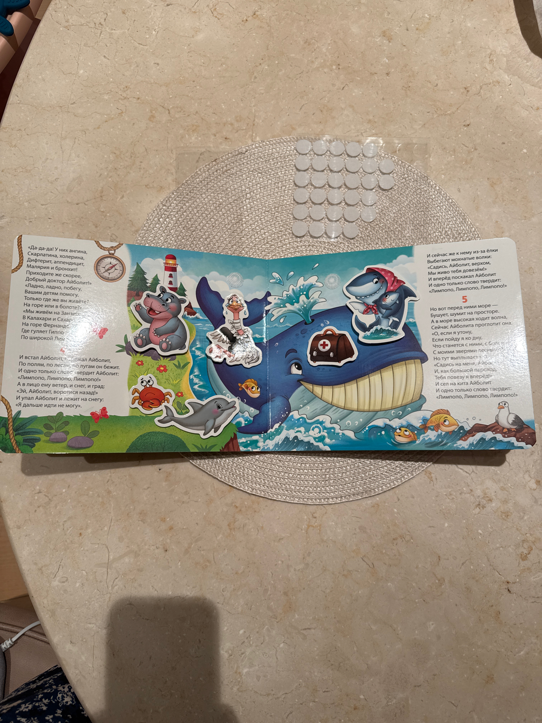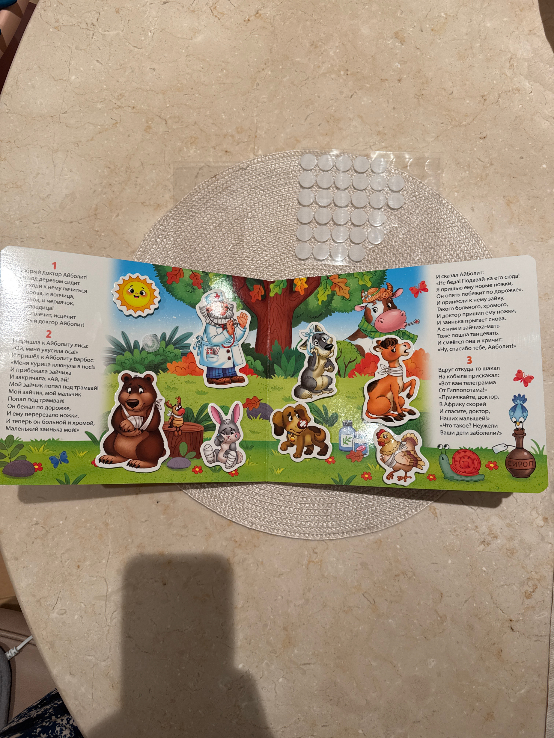 Книжка-сказка с липучками "Айболит" направлена на расширение кругозора у деток. С этим пособием малыш сможет оживить героев сказки про доброго доктора. Внутри ребёнок найдёт поля с яркими иллюстрациями.