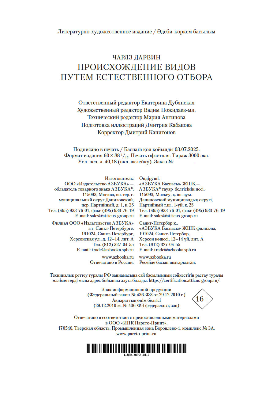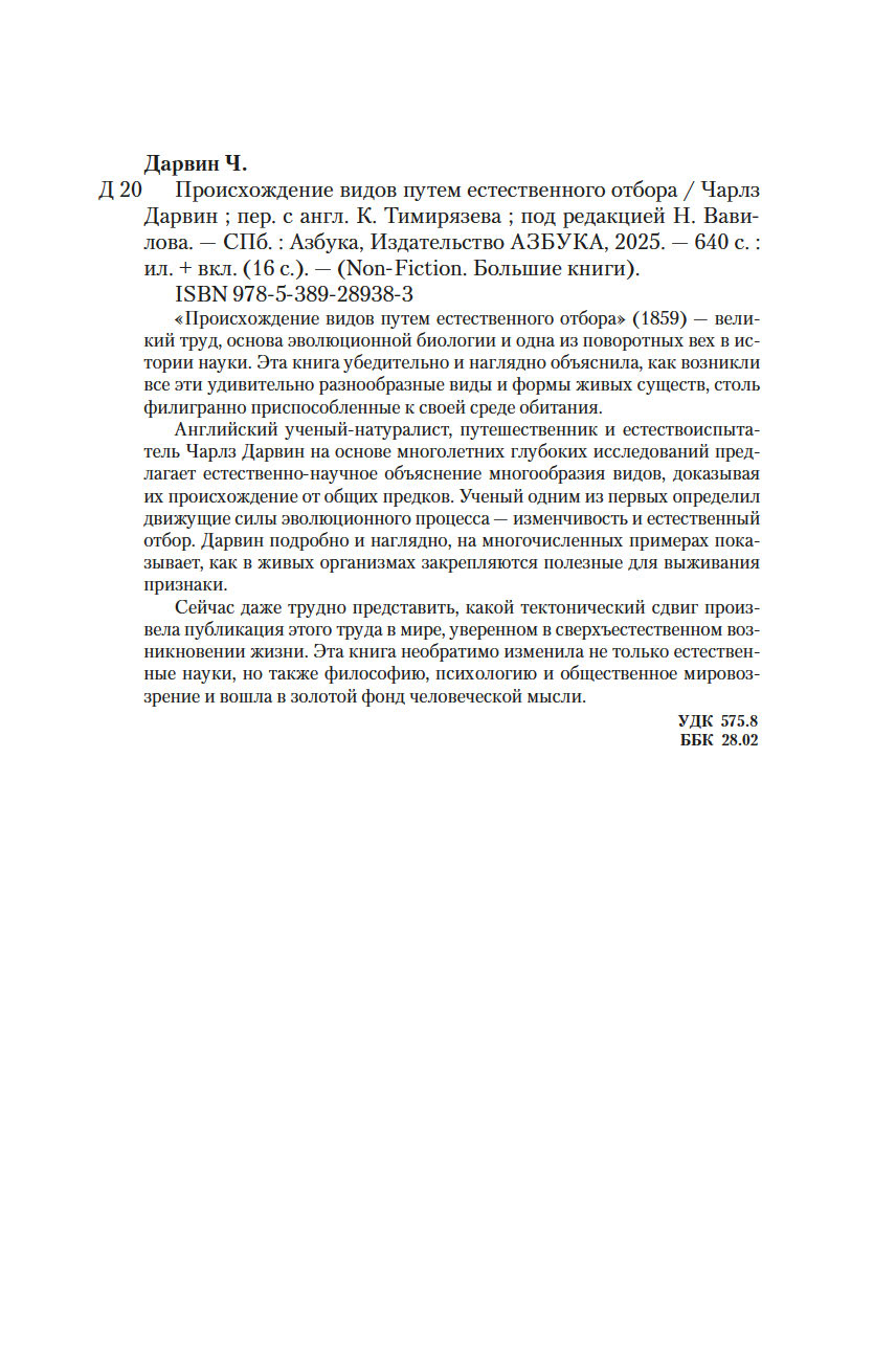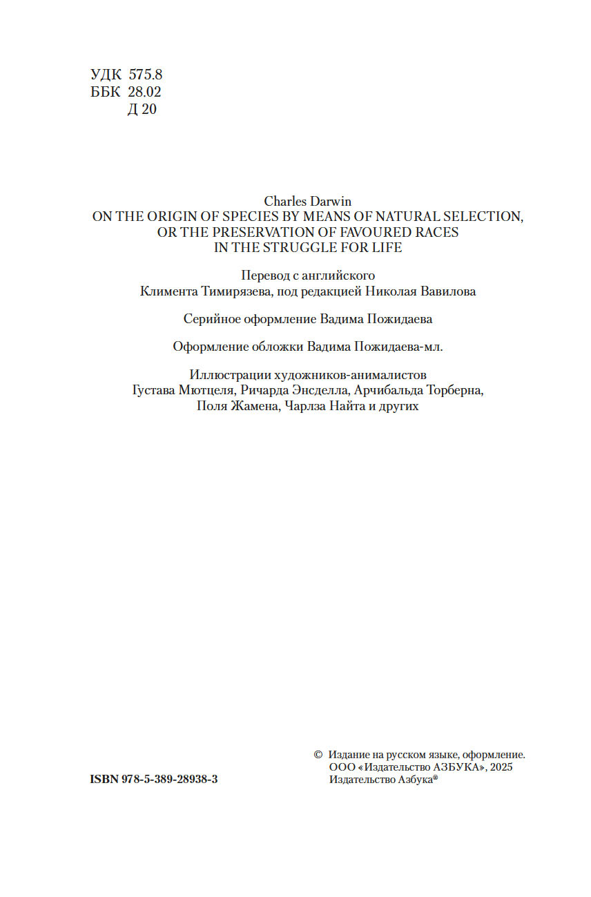 | Название в оригинале | On the Origin of Species by Means of Natural Selection, or the Preservation of Favoured Races in the Struggle for Life |