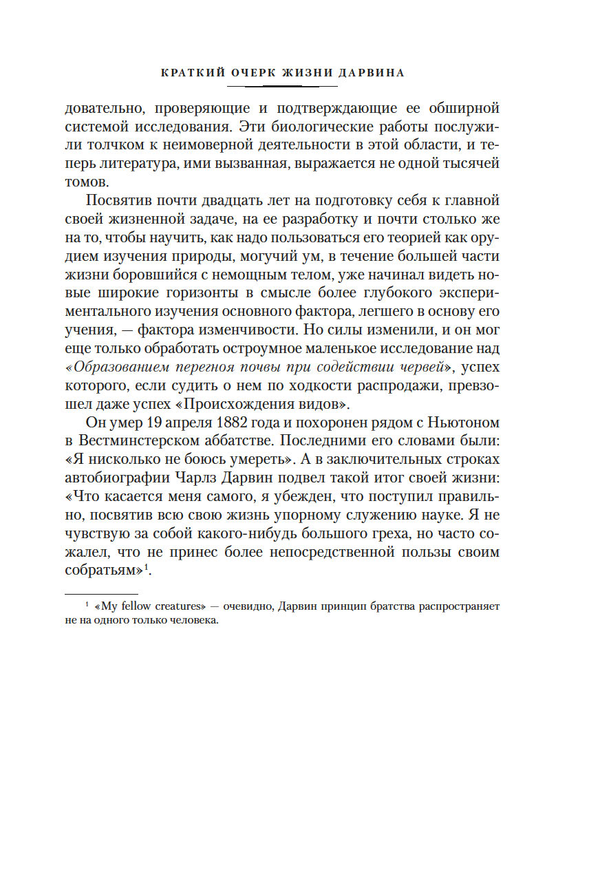 Сейчас даже трудно представить, какой тектонический сдвиг произвела публикация этого труда в мире, уверенном в сверхъестественном возникновении жизни. Эта книга необратимо изменила не только естественные науки, но также философию, психологию и общественное мировоззрение и вошла в золотой фонд человеческой мысли.