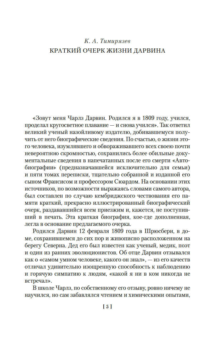Английский ученый-натуралист, путешественник и естествоиспытатель Чарлз Дарвин на основе многолетних глубоких исследований предлагает естественно-научное объяснение многообразия видов, доказывая их происхождение от общих предков. Ученый одним из первых определил движущие силы эволюционного процесса – изменчивость и естественный отбор. Дарвин подробно и наглядно, на многочисленных примерах показывает, как в живых организмах закрепляются полезные для выживания признаки.