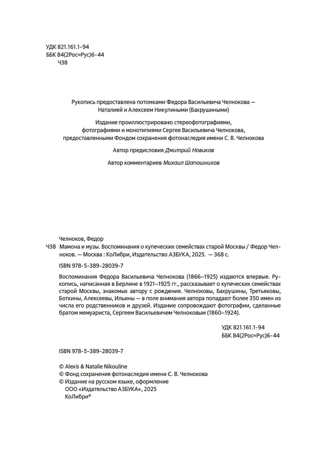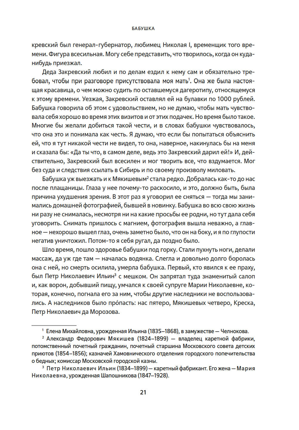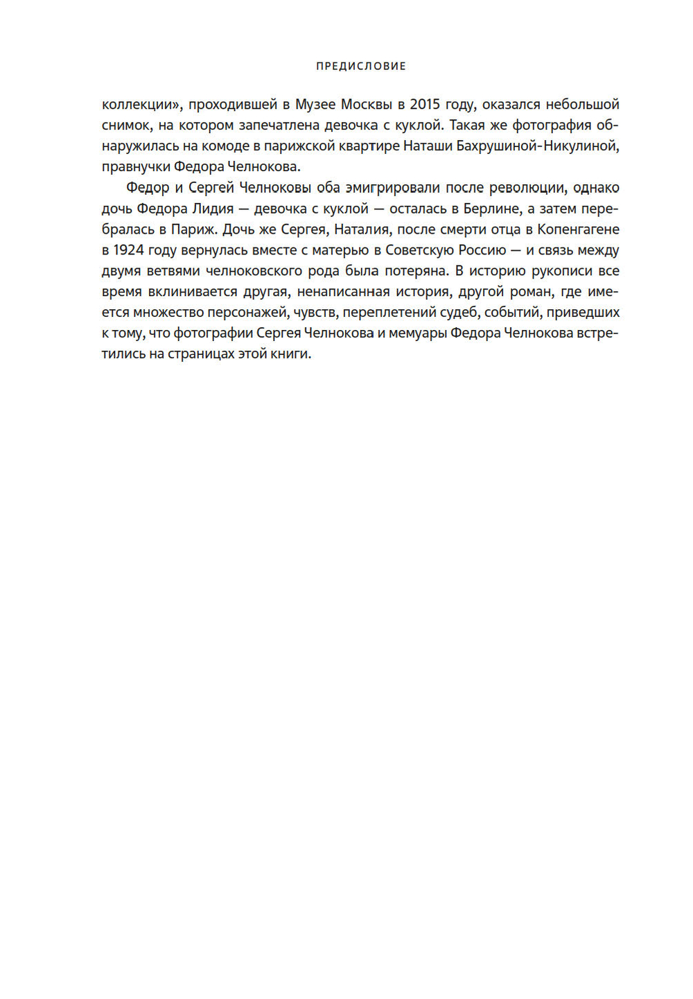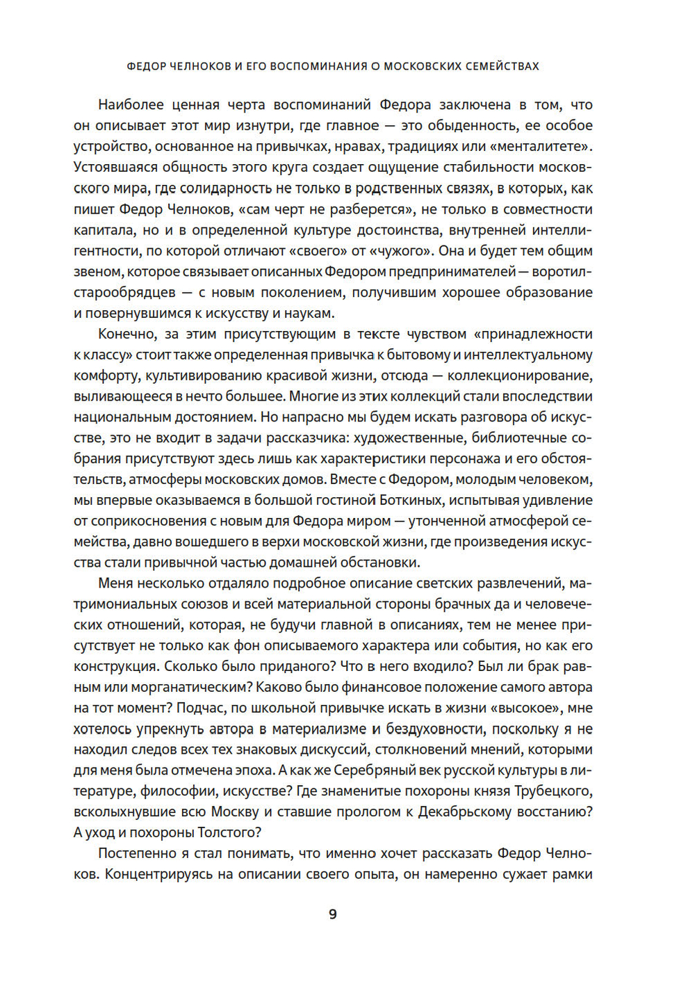 Воспоминания Федора Васильевича Челнокова (1866–1925) издаются впервые. Рукопись, написанная в Берлине в 1921–1925 гг., рассказывает о купеческих семействах старой Москвы, знакомых автору с рождения. Челноковы, Бахрушины, Третьяковы, Боткины, Алексеевы, Ильины – в поле внимания автора попадают более 350 имен из числа его родственников и друзей. Издание сопровождают фотографии, сделанные братом мемуариста, Сергеем Васильевичем Челноковым (1860–1924).