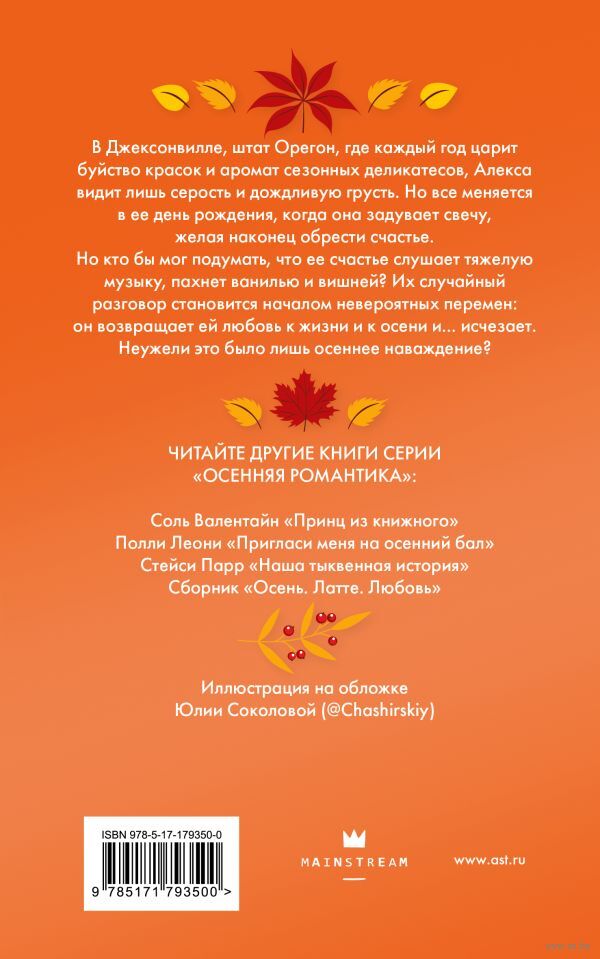 Но кто бы мог подумать, что ее счастье слушает тяжелую музыку, пахнет ванилью и вишней? Их случайный разговор становится началом невероятных перемен: он возвращает ей любовь к жизни и к осени и… исчезает.